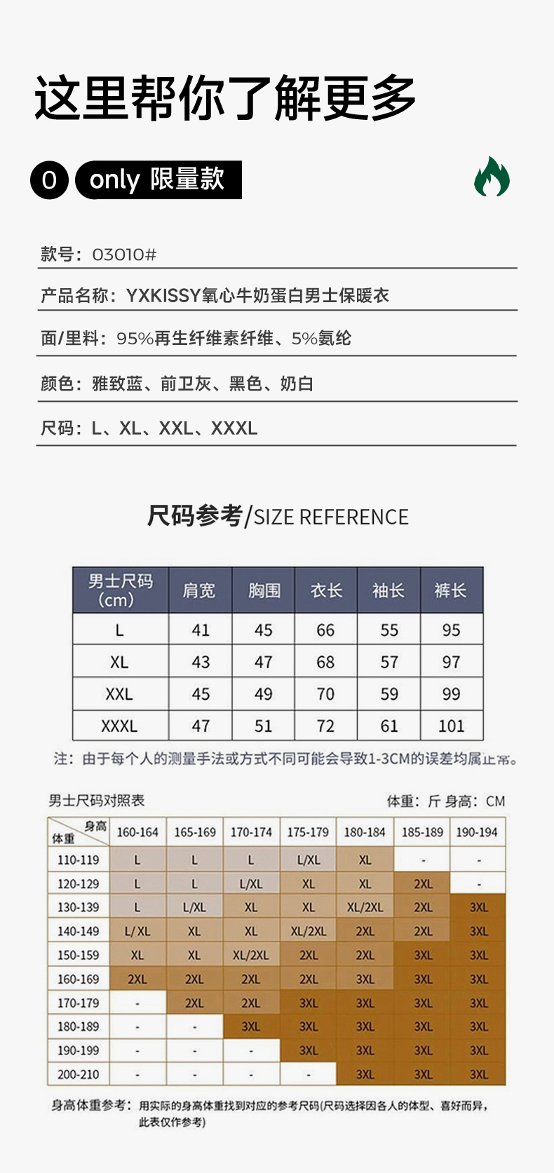 YXKISSY氧心牛奶蛋白男士保暖套装