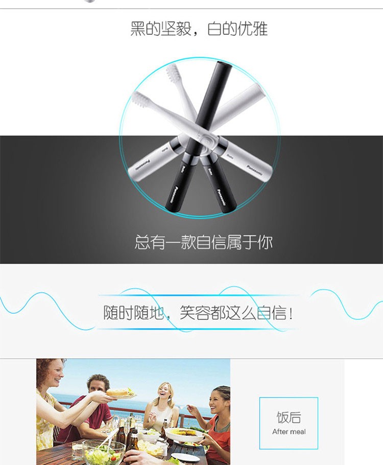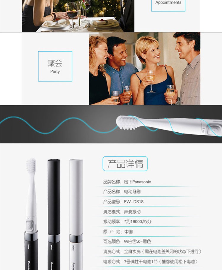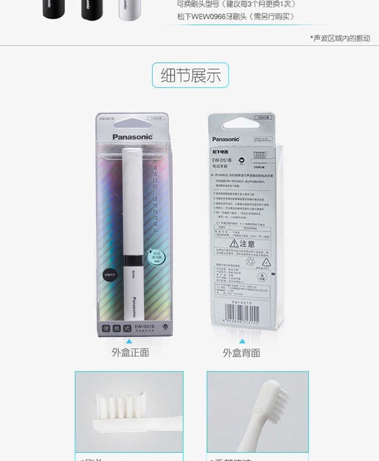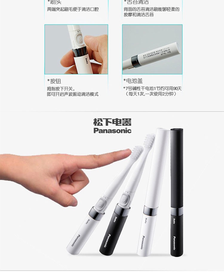 松下(Panasonic)电动牙刷 全身水洗 经典配色 舌苔清洗 小巧便携 EW-DS18