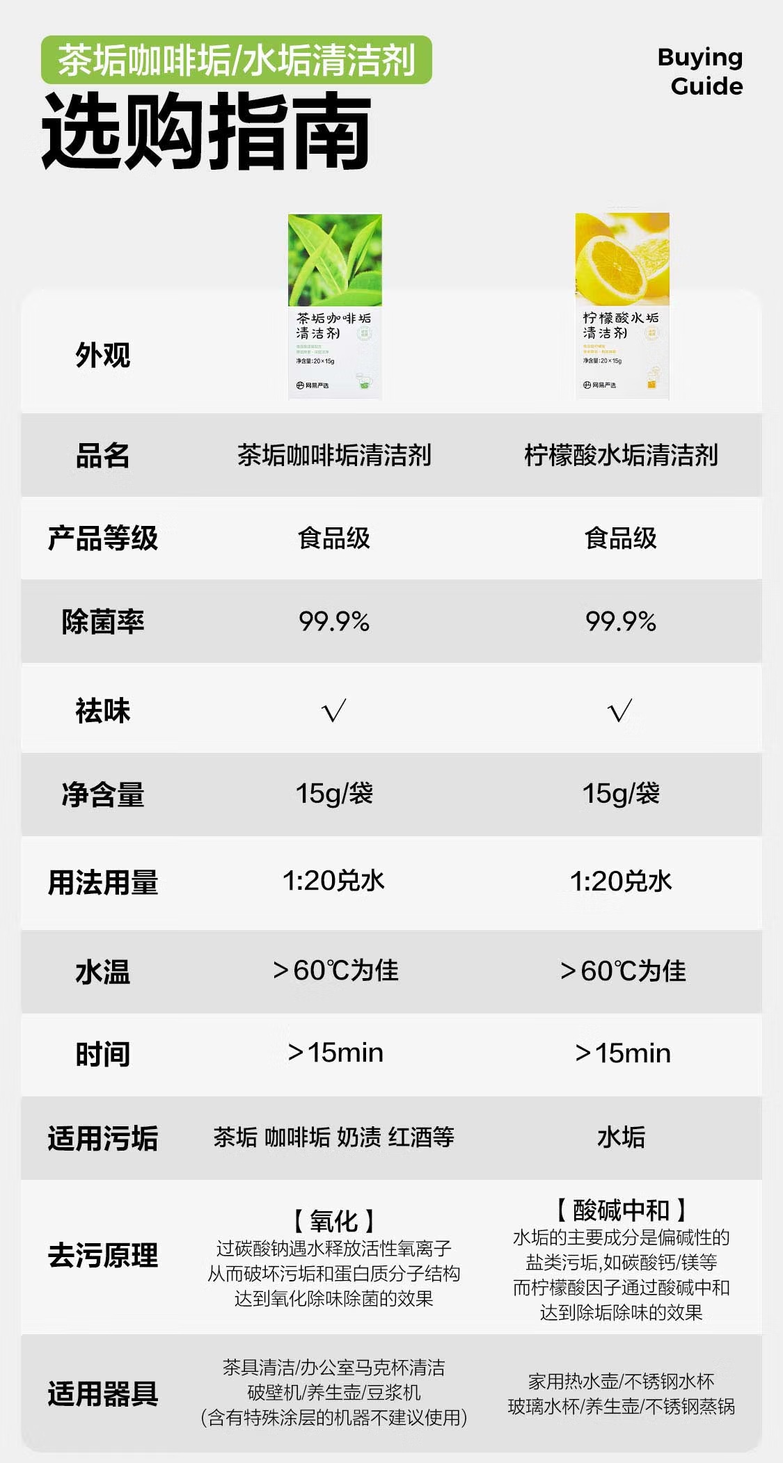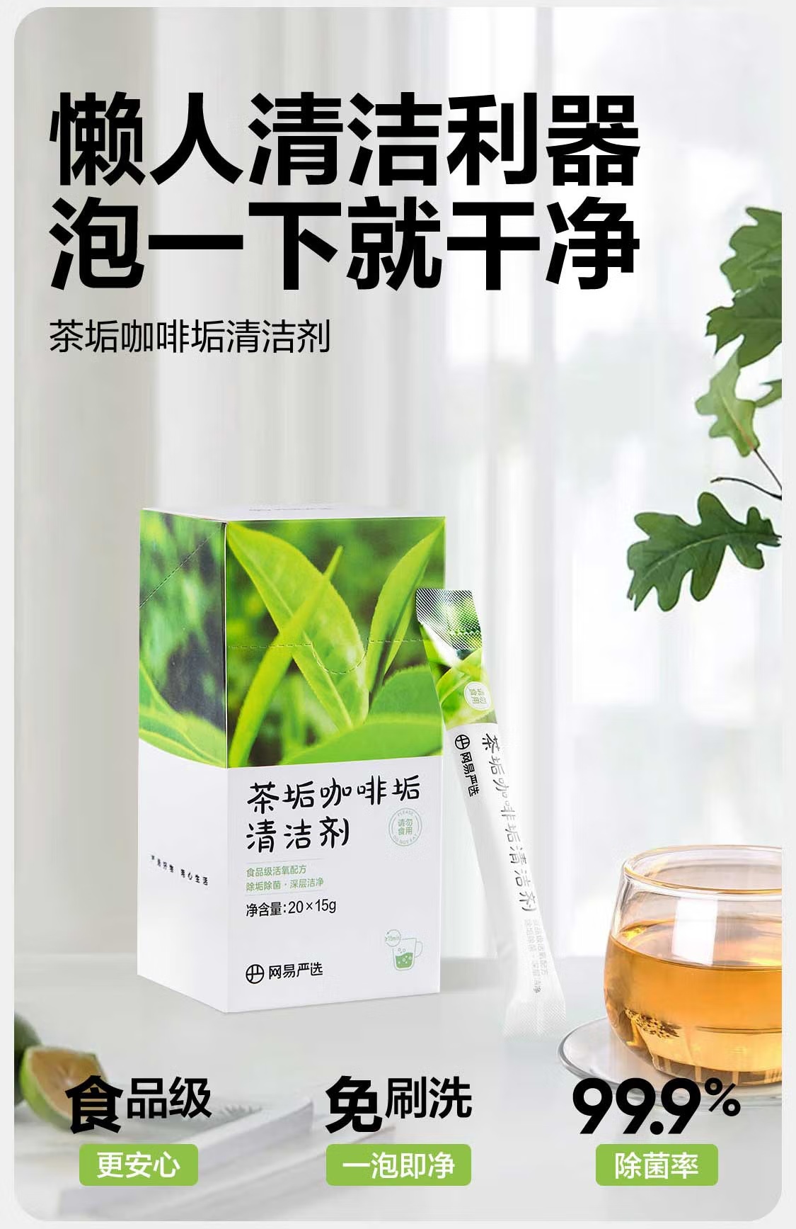 【10w+销量好评】网易严选 茶垢咖啡垢清洁剂300g 水壶玻璃杯食品级清洁剂(20袋/盒)
