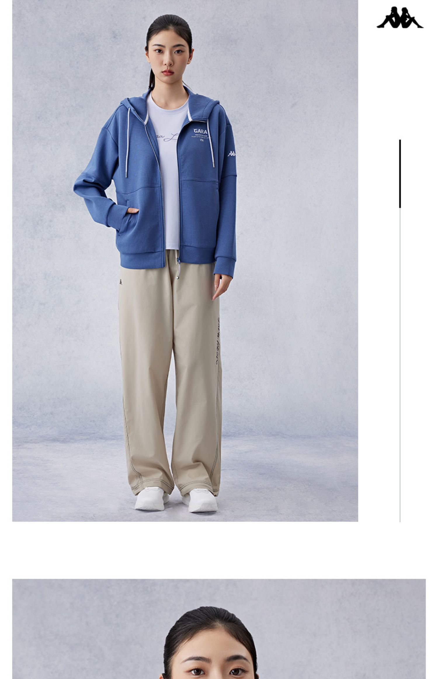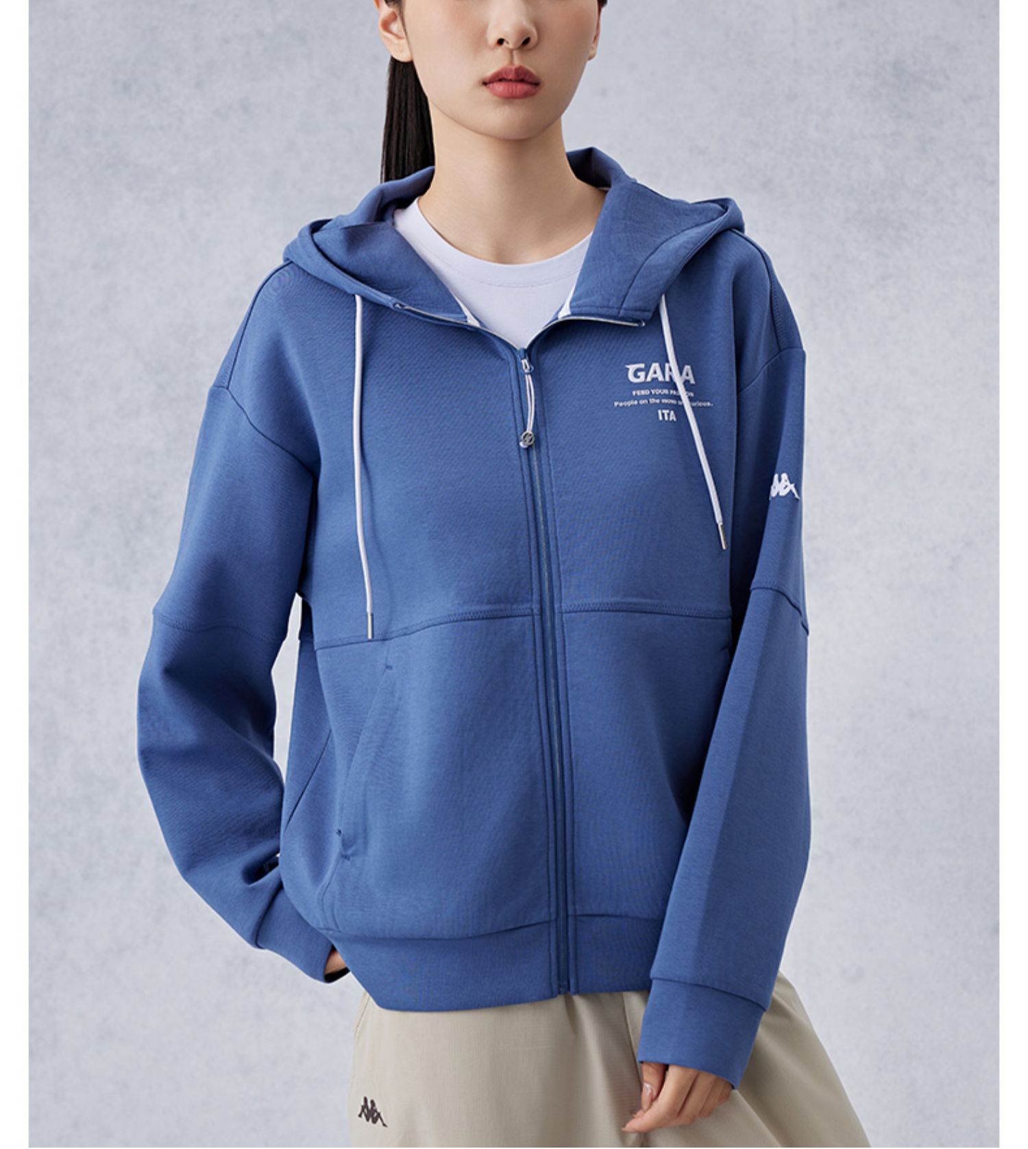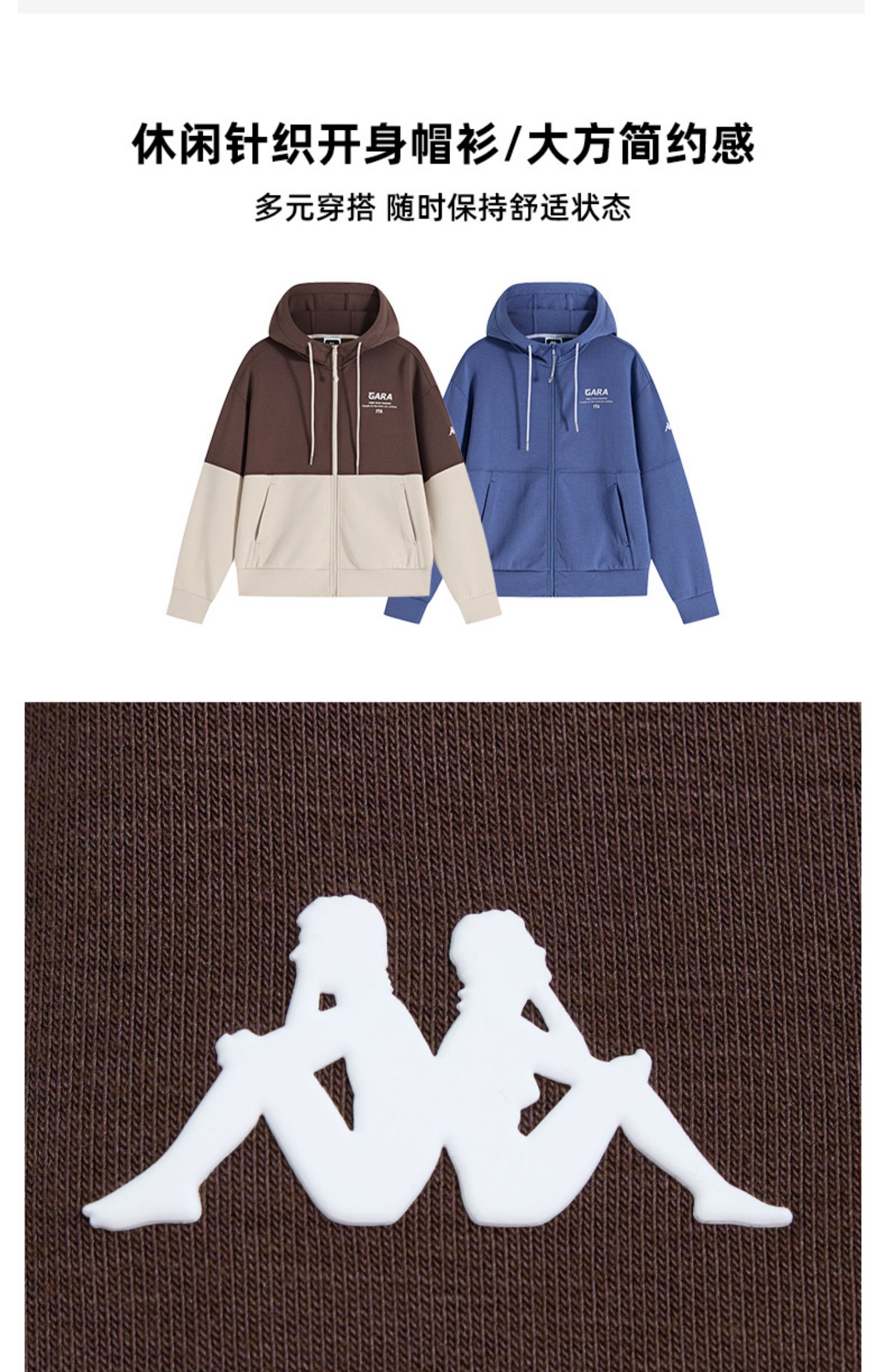 Kappa卡帕背靠背复古针织帽衫女士2024新款运动开衫上衣外套女款K0E62MK43