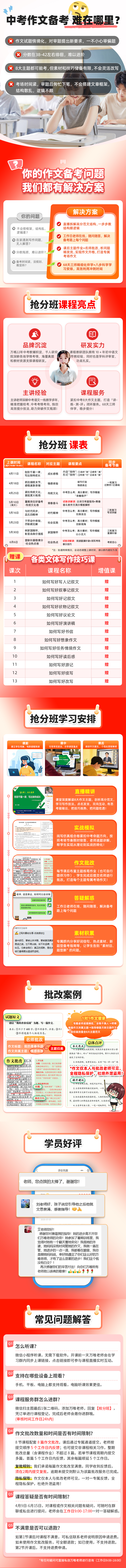 【中考作文抢分班】 8节主题课程(含仿真卷测试与讲解),学练仿评改测析固八步科学学习法,助力初三语文作文提分