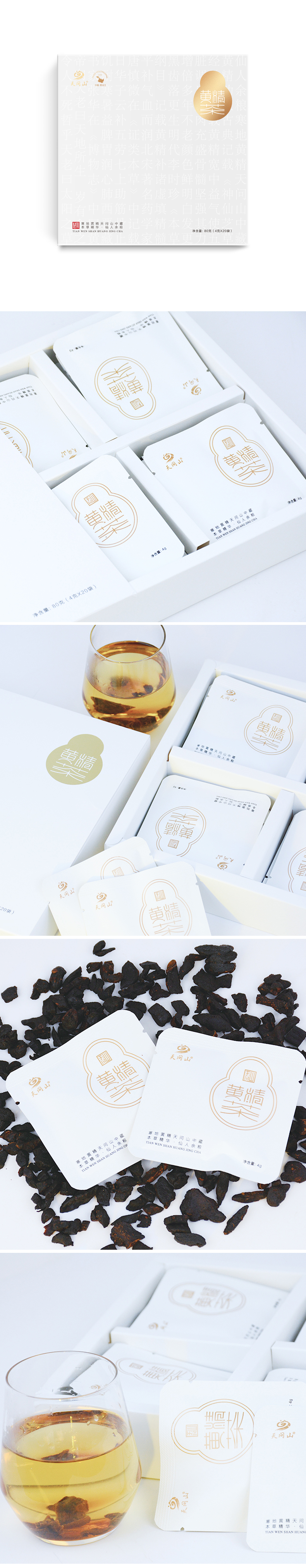 【草本精华】天问山 黄精茶白盒 80克(4克X20袋)/盒 草本精华
