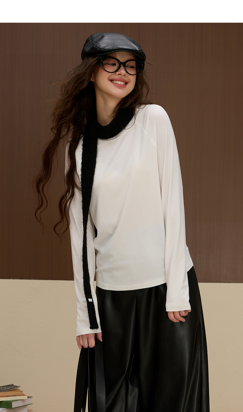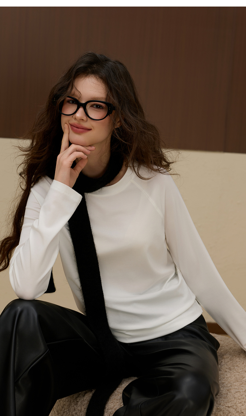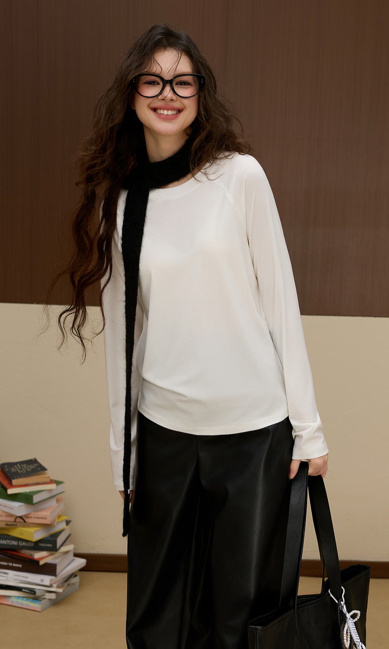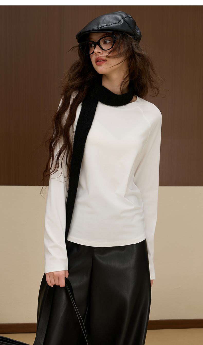 【莱赛尔】三彩独醒2025冬季新款休闲T恤圆领插肩袖简约F