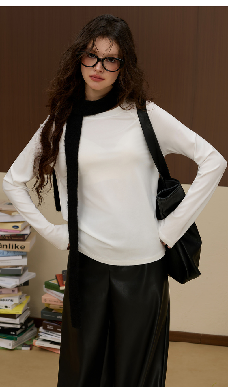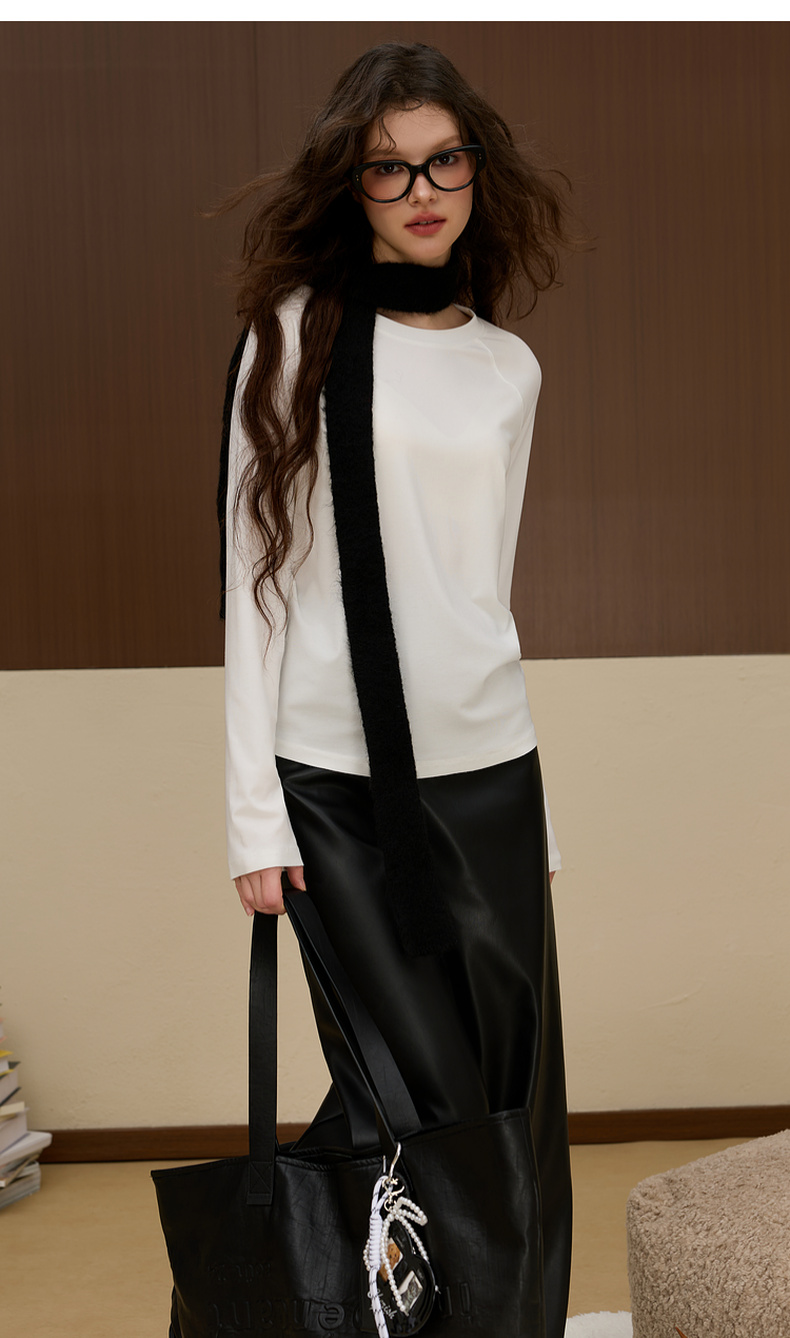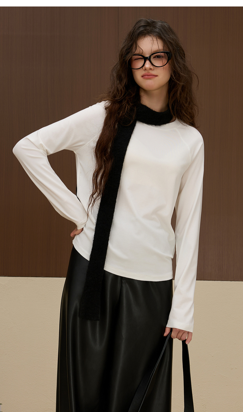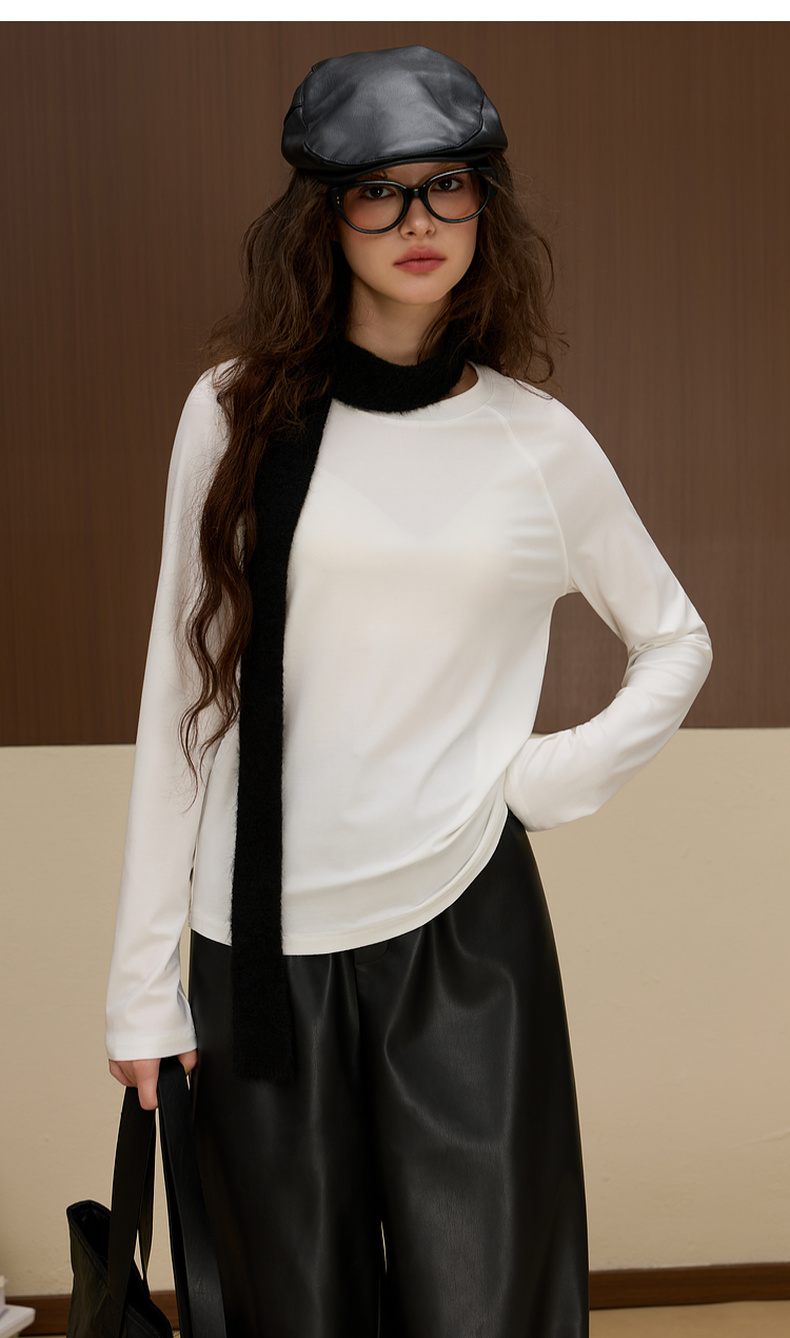 【莱赛尔】三彩独醒2025冬季新款休闲T恤圆领插肩袖简约F