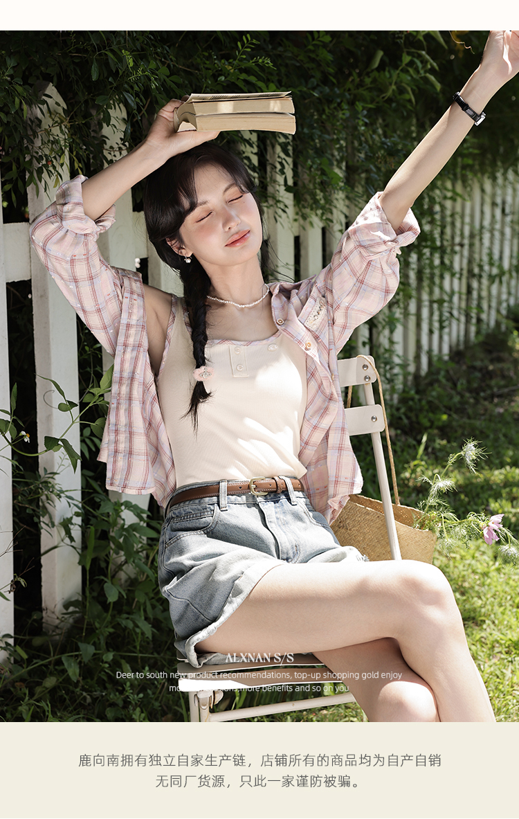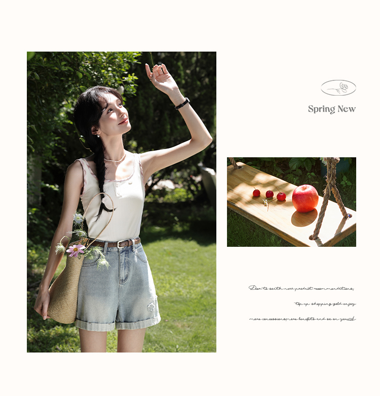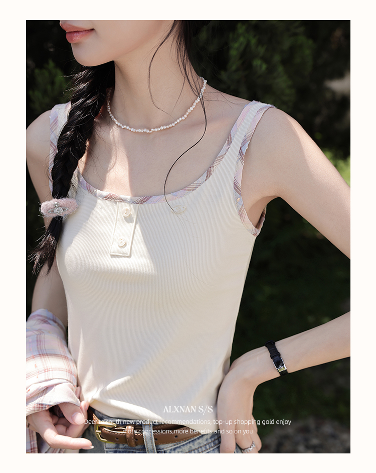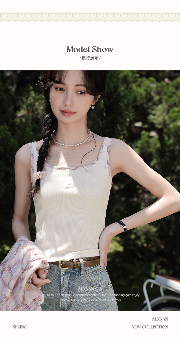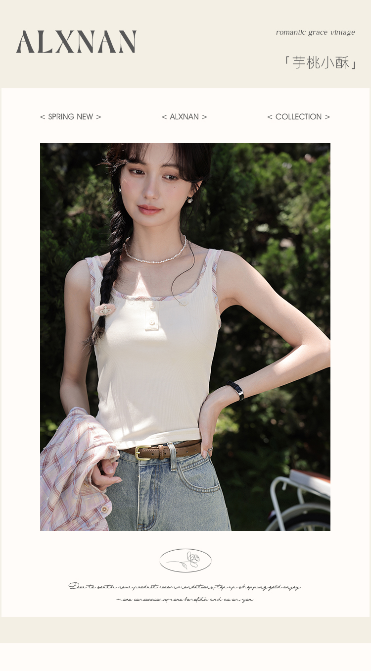 鹿向南「芋桃小酥」米白色无袖吊带背心女夏季小众修身内搭上衣