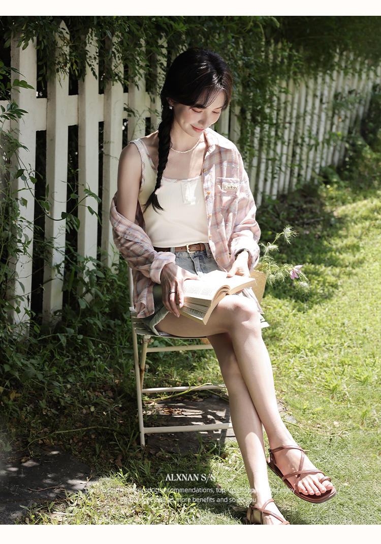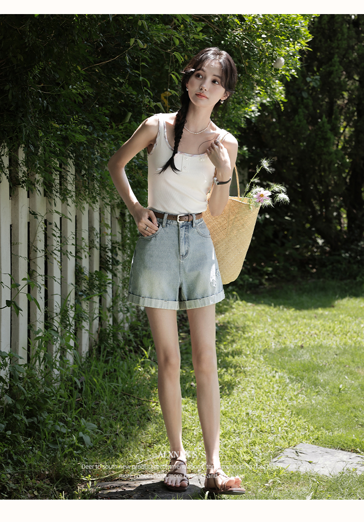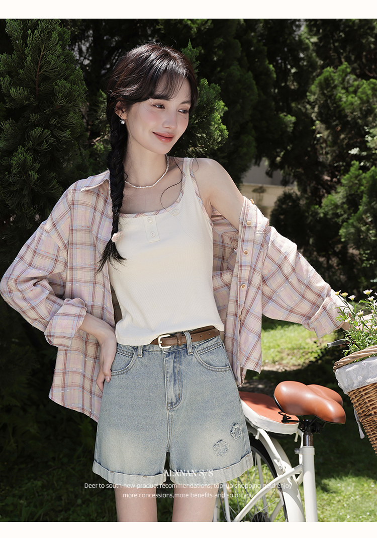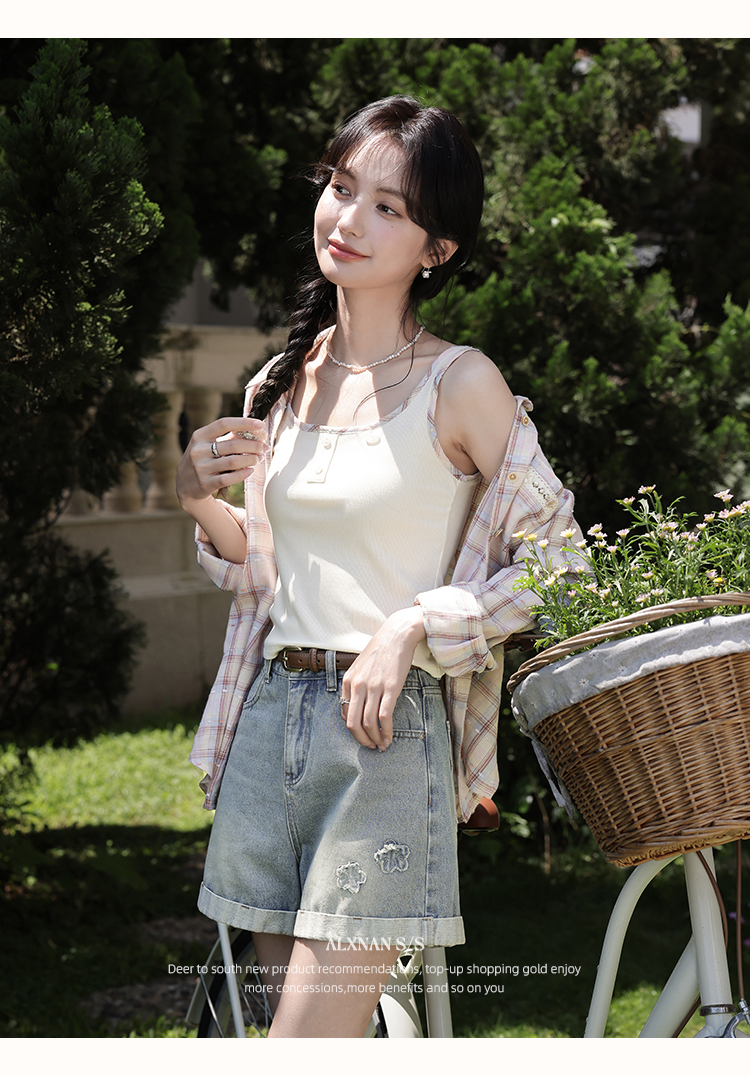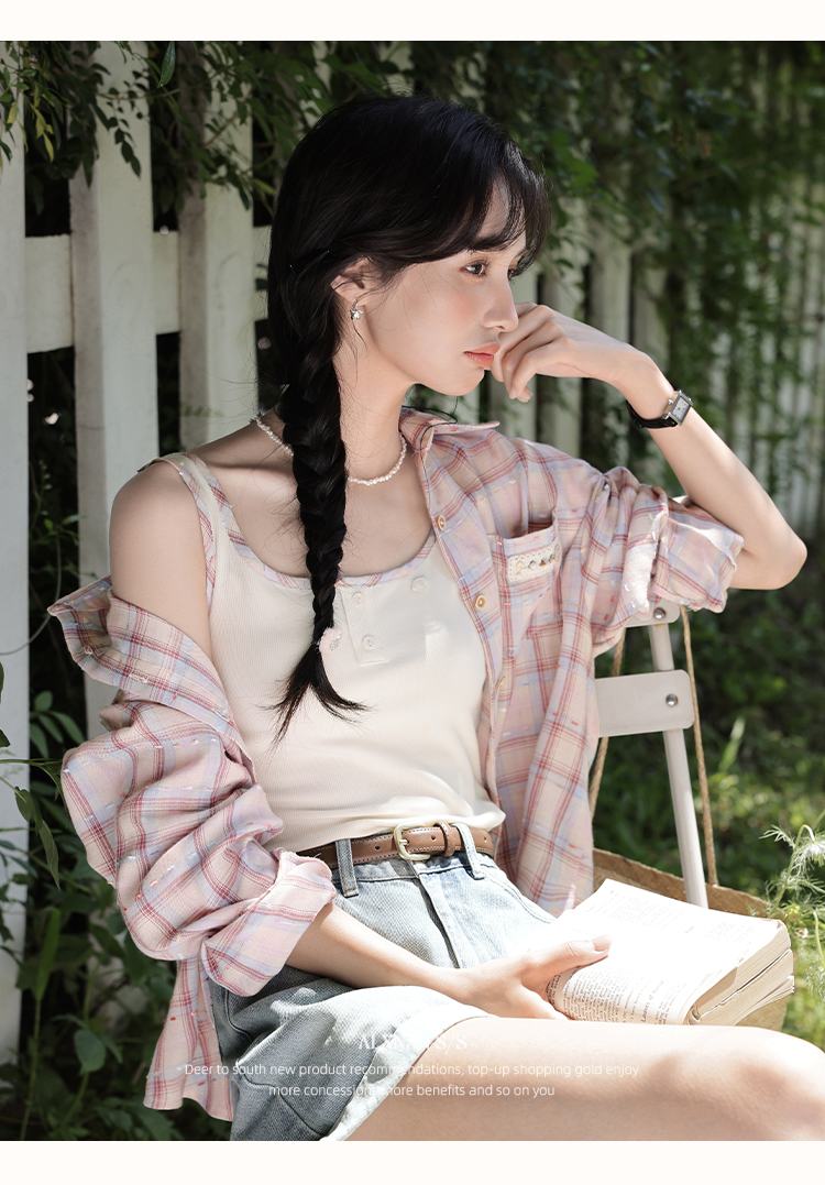 鹿向南「芋桃小酥」米白色无袖吊带背心女夏季小众修身内搭上衣