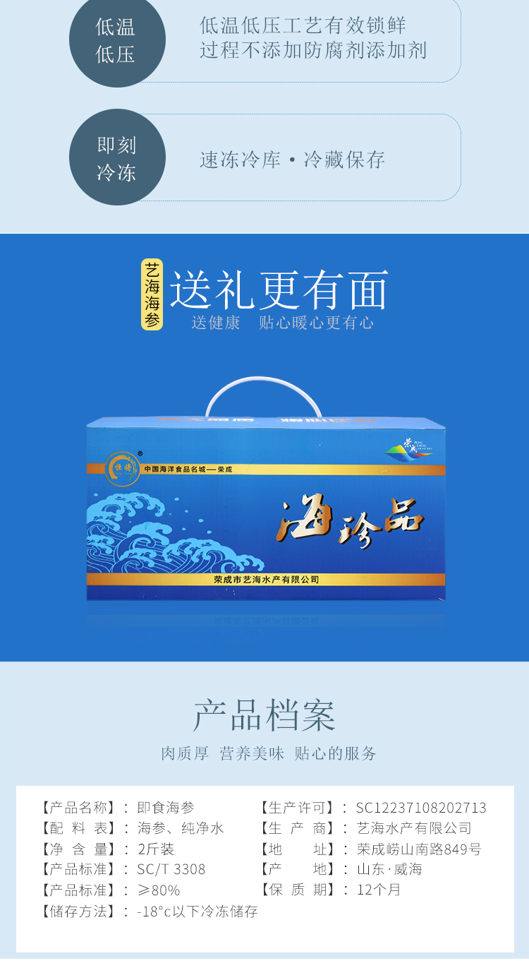 【艺海水产】2A鲜食/即食海参礼盒 16-20头