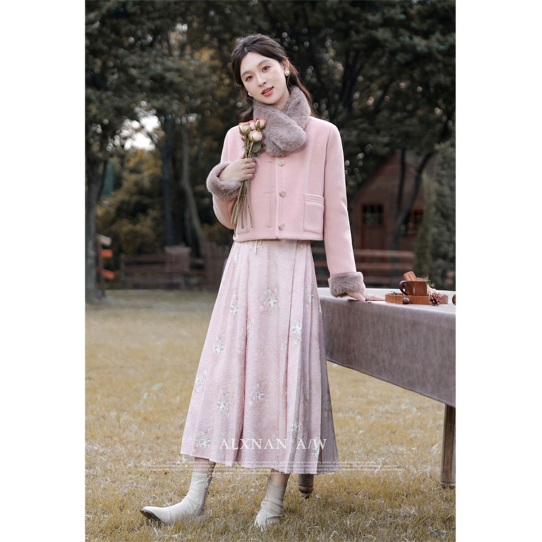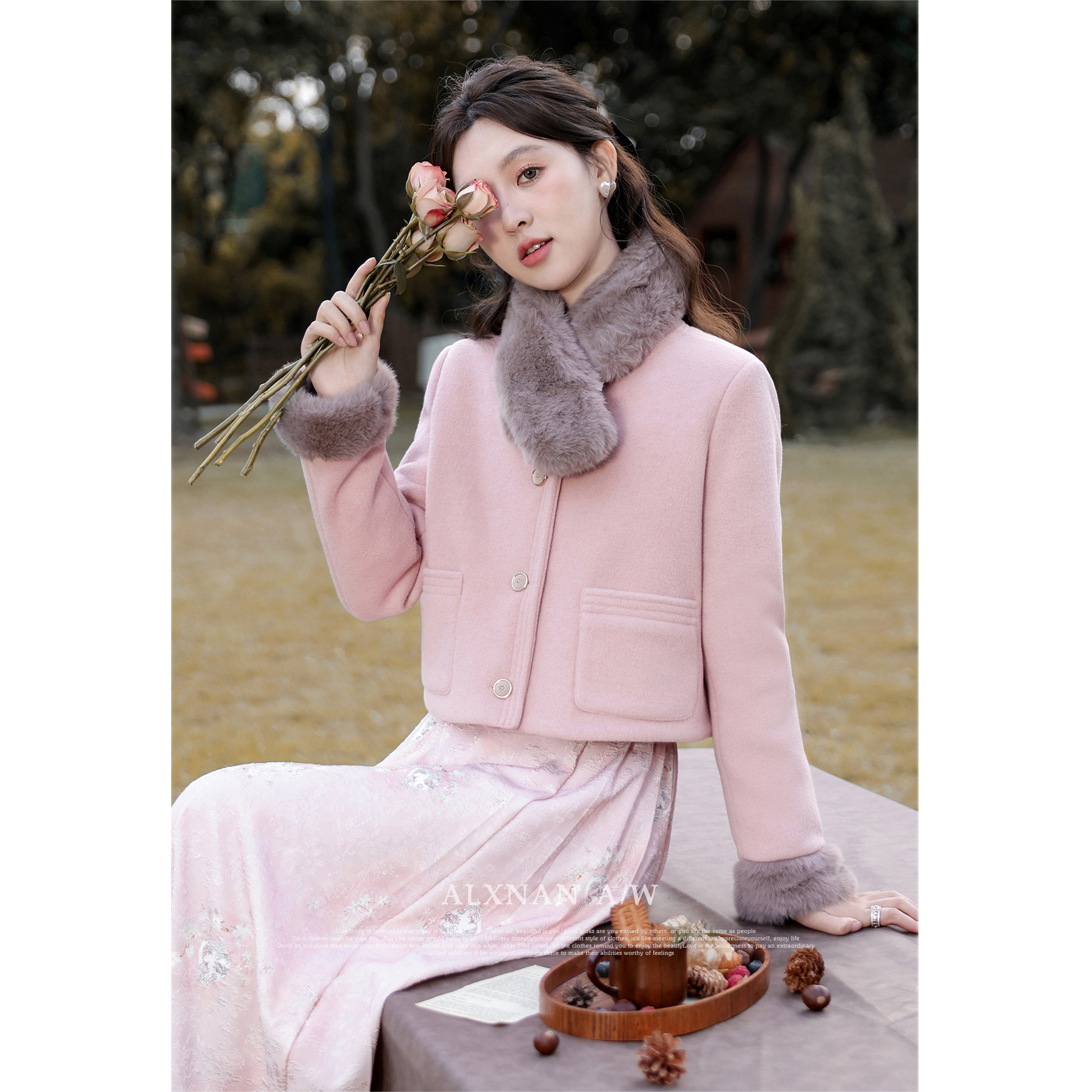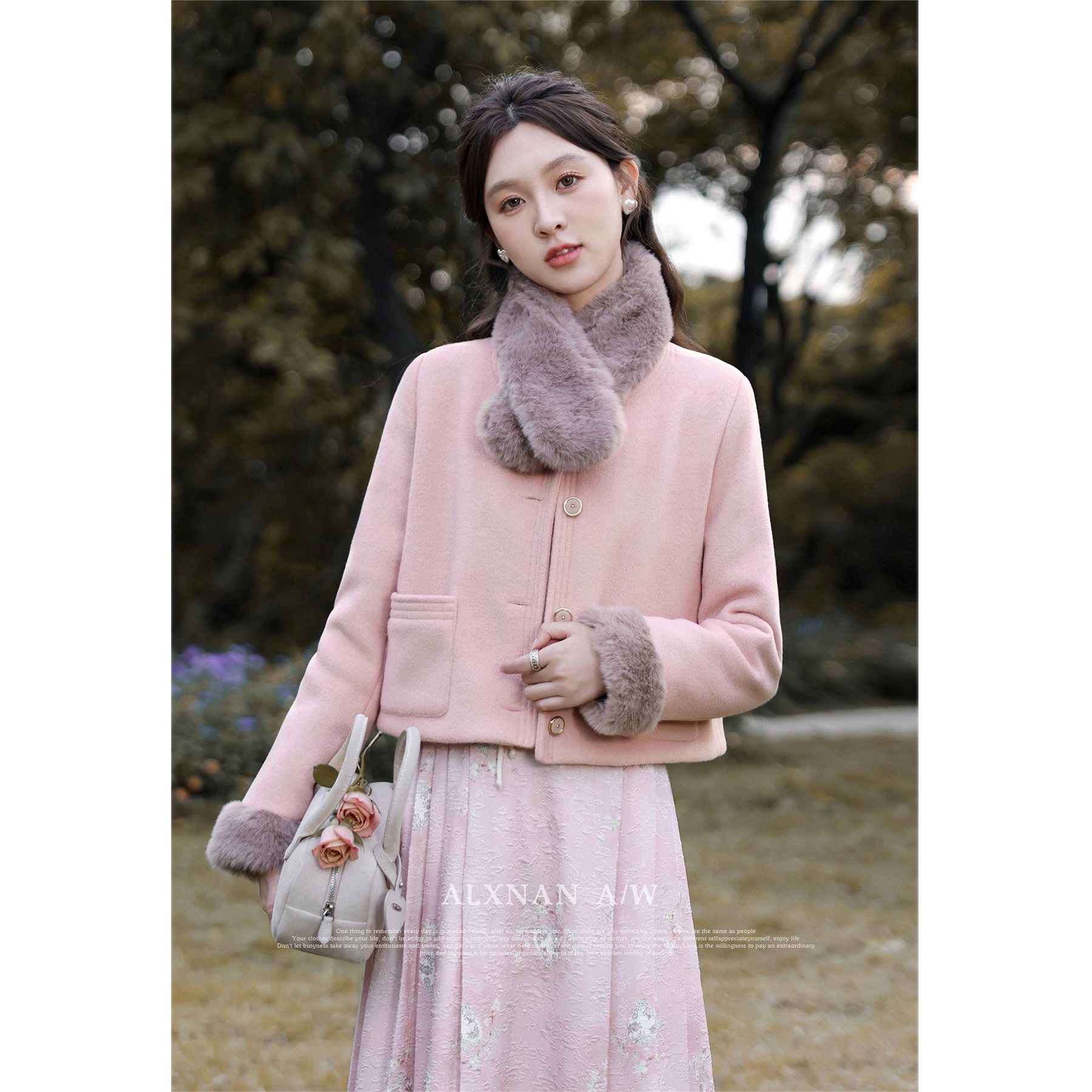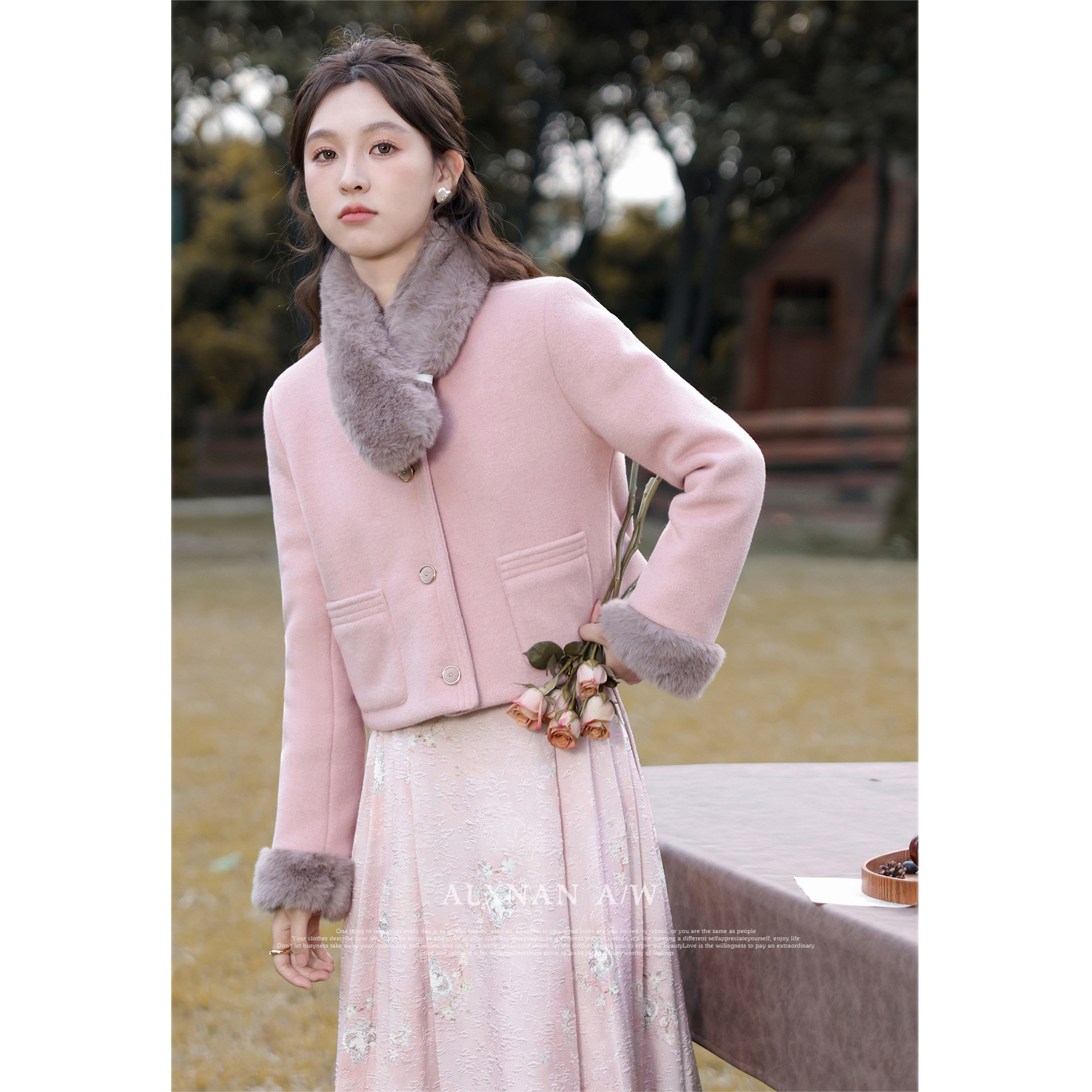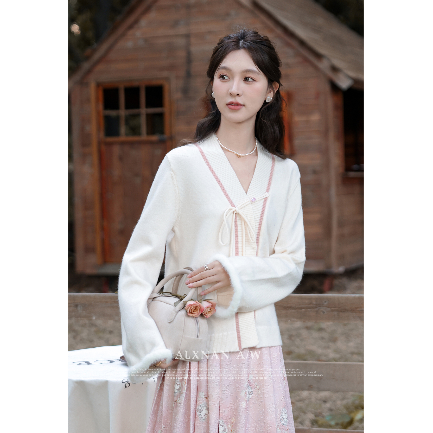 鹿向南《落樱吹雪》秋冬优雅气质v领毛衣新款宽松绑带针织开衫女L33123+L33125