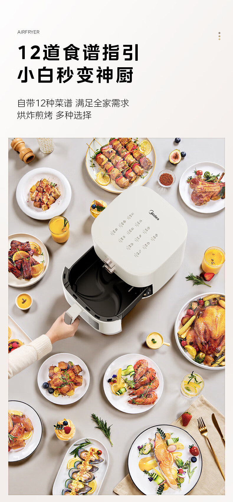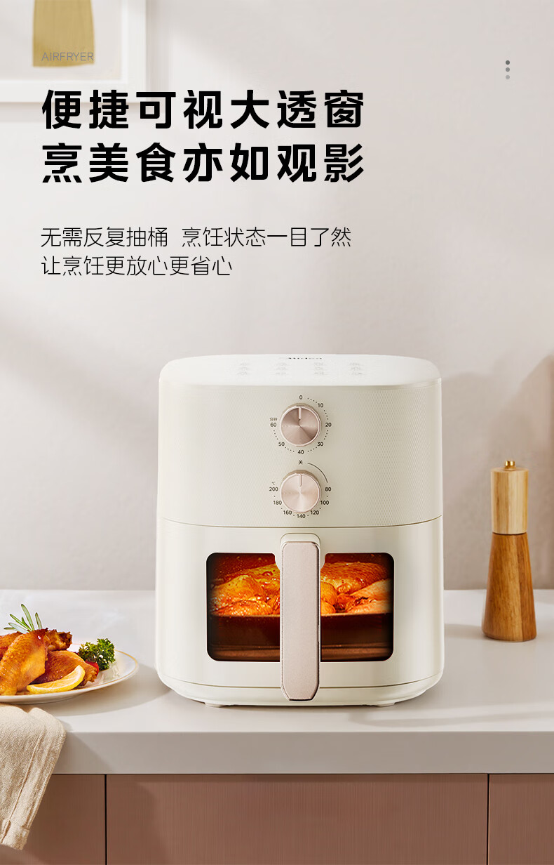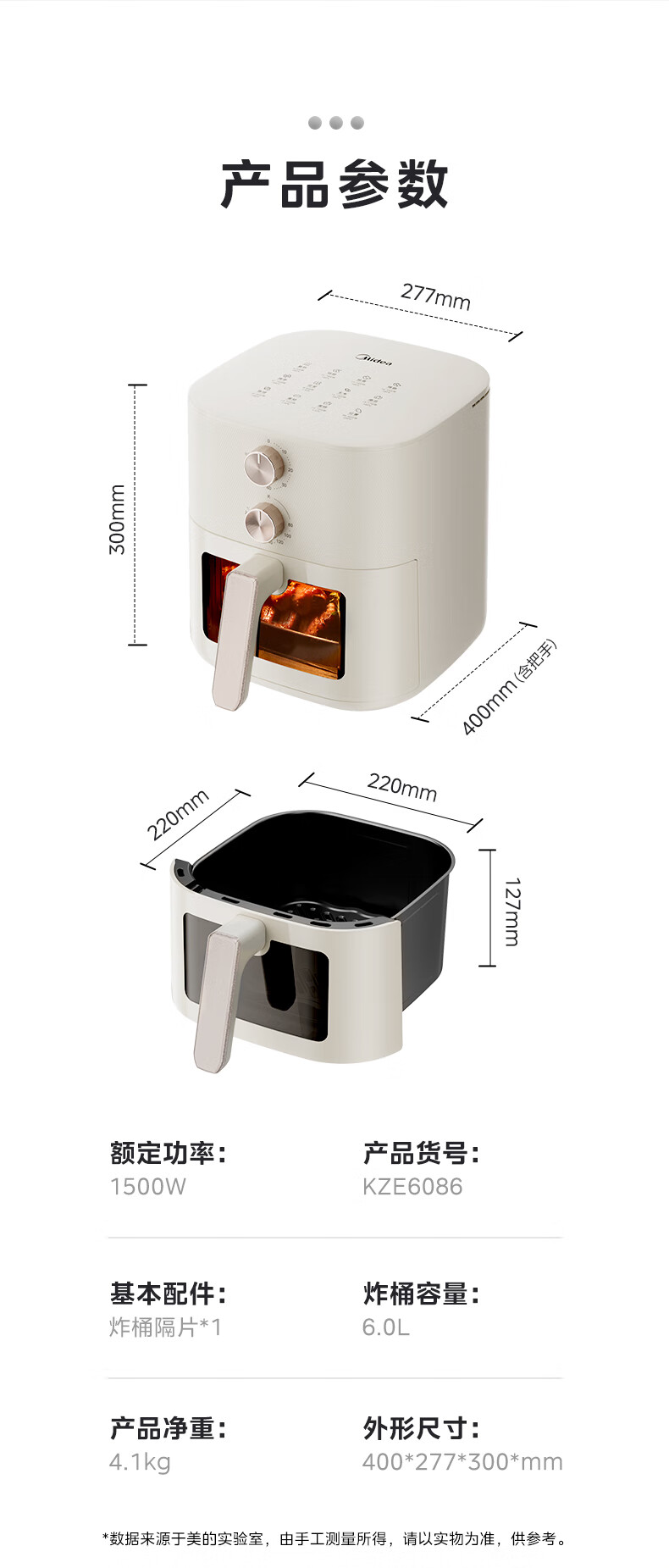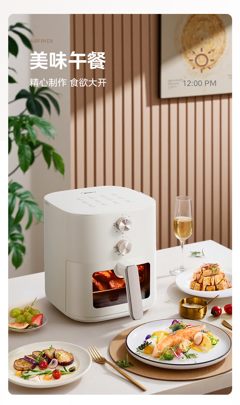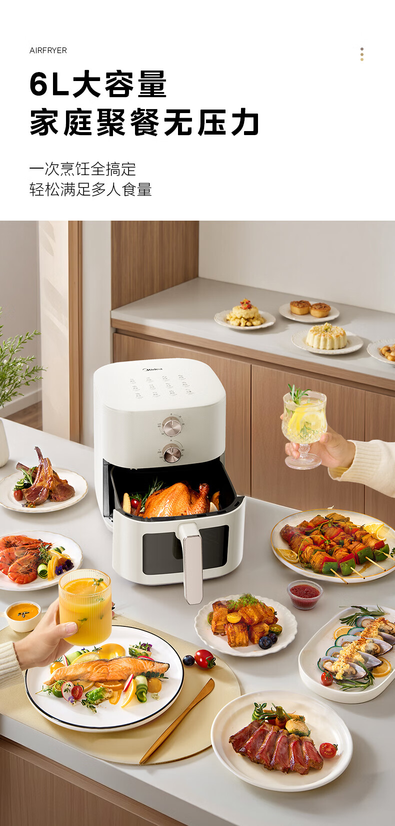 美的(Midea)空气炸锅免翻面 2025年新款可视大视窗经典旋钮 实用大容量家用小家电6L 2.0金属内腔KZE6086