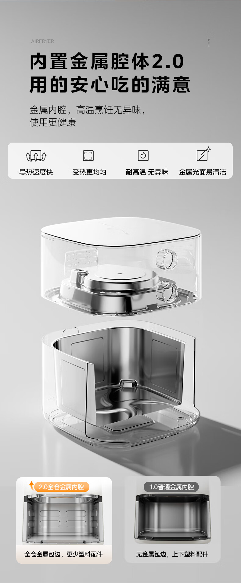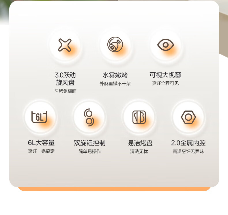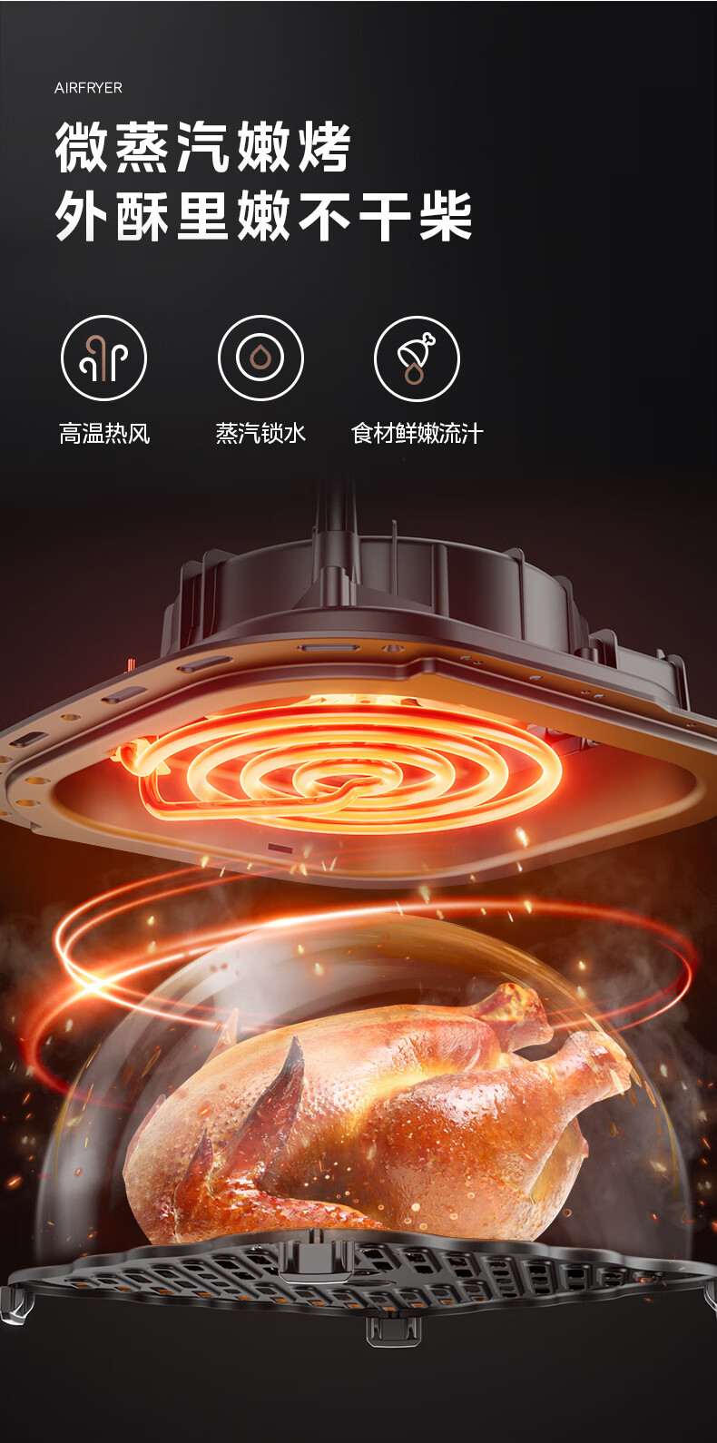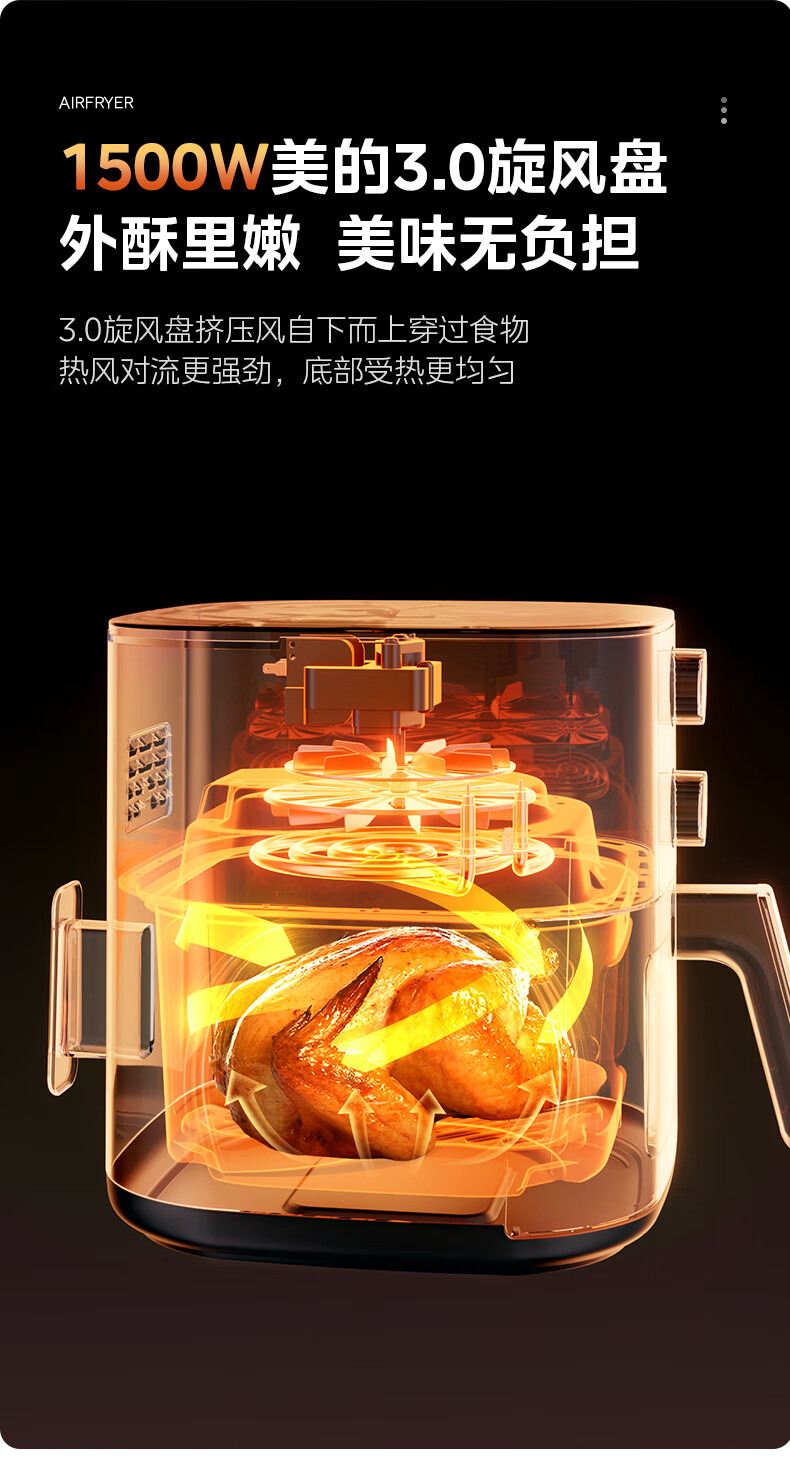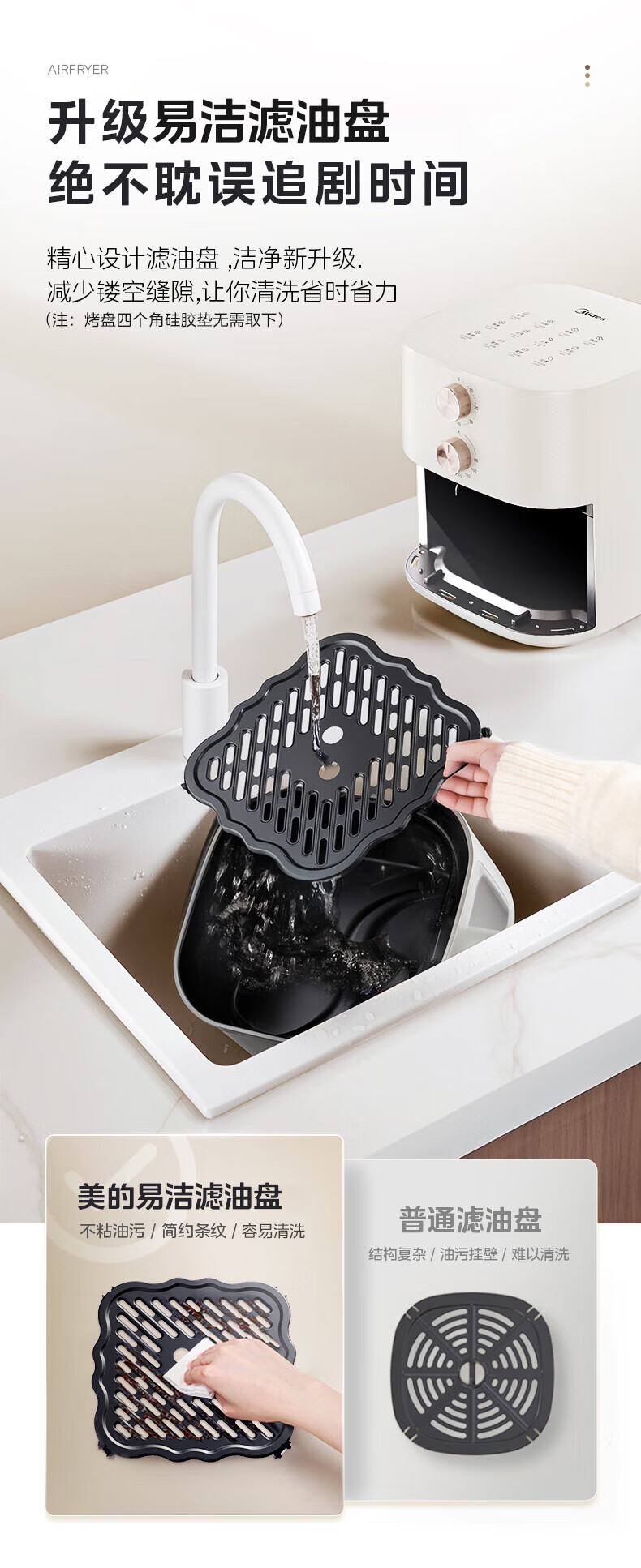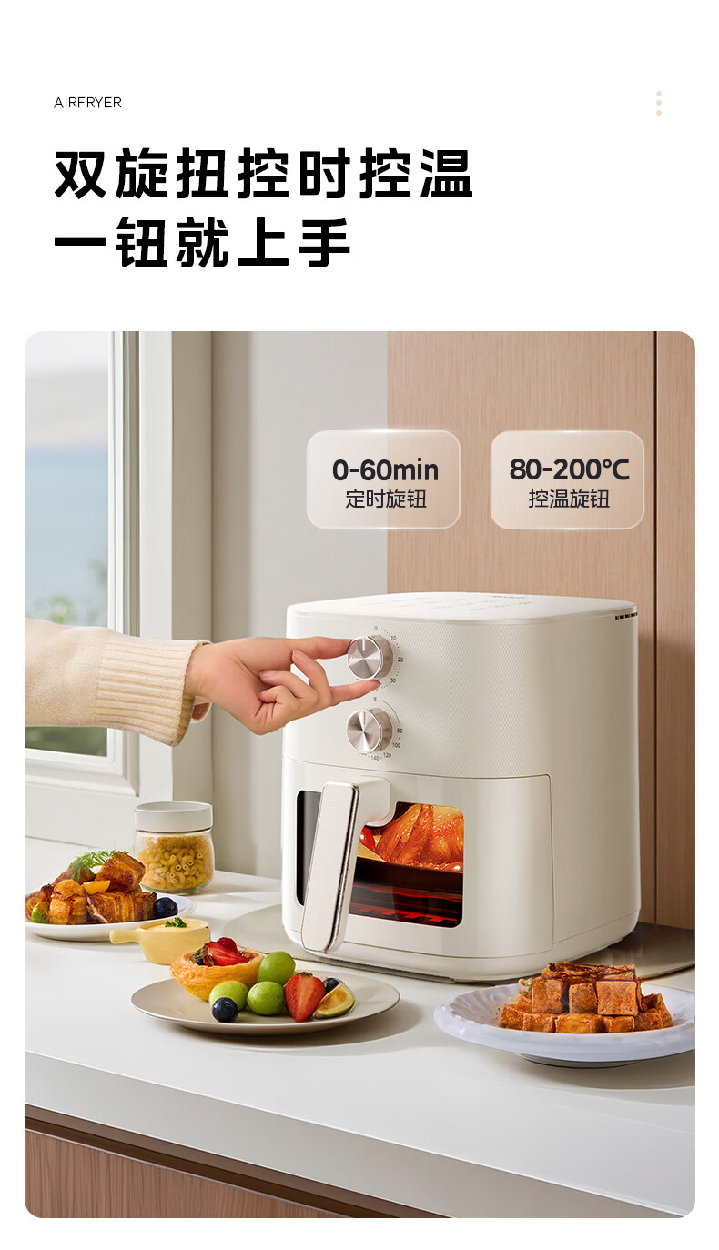 美的(Midea)空气炸锅免翻面 2025年新款可视大视窗经典旋钮 实用大容量家用小家电6L 2.0金属内腔KZE6086