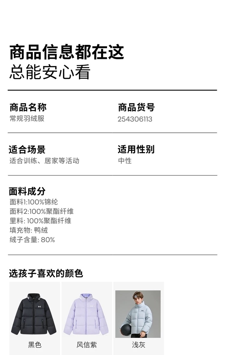 【12月-特惠福利】Under Armour安德玛儿童常规羽绒服254306113