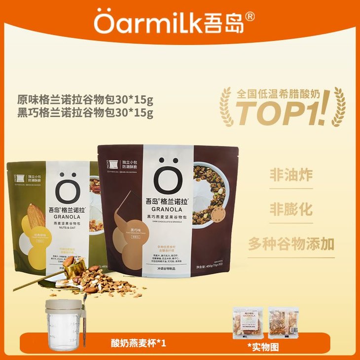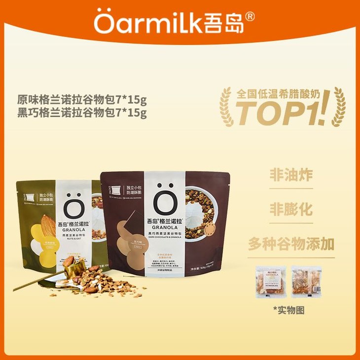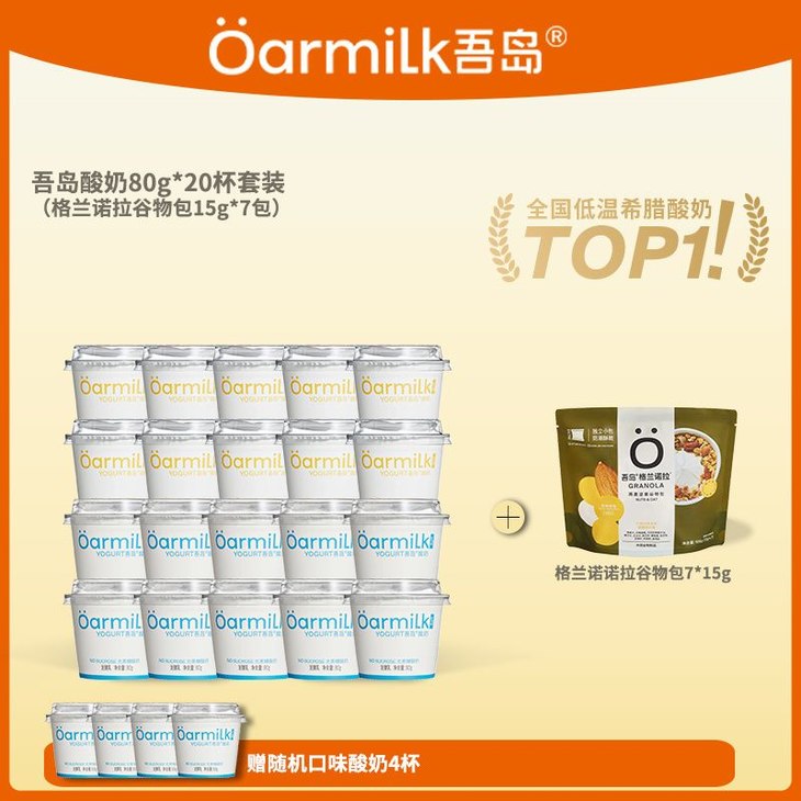 🎁套餐二、(非希腊)80g吾岛酸奶套餐 吾岛低糖酸奶80g*10杯 吾岛无蔗糖酸奶80g*10杯 赠4杯随机口味酸奶+格兰诺拉谷物包7*15g