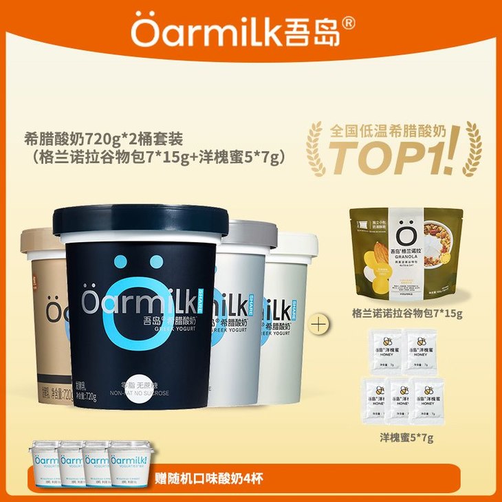 🎁套餐四 吾岛希腊酸奶720g*2桶(任选四口味) 无糖希腊720g*2 低糖希腊720g*2 零脂希腊720g*2 美拉德720g*2 赠4杯随机口味酸奶+格兰诺拉谷物包7*15g+洋槐蜜5*7g