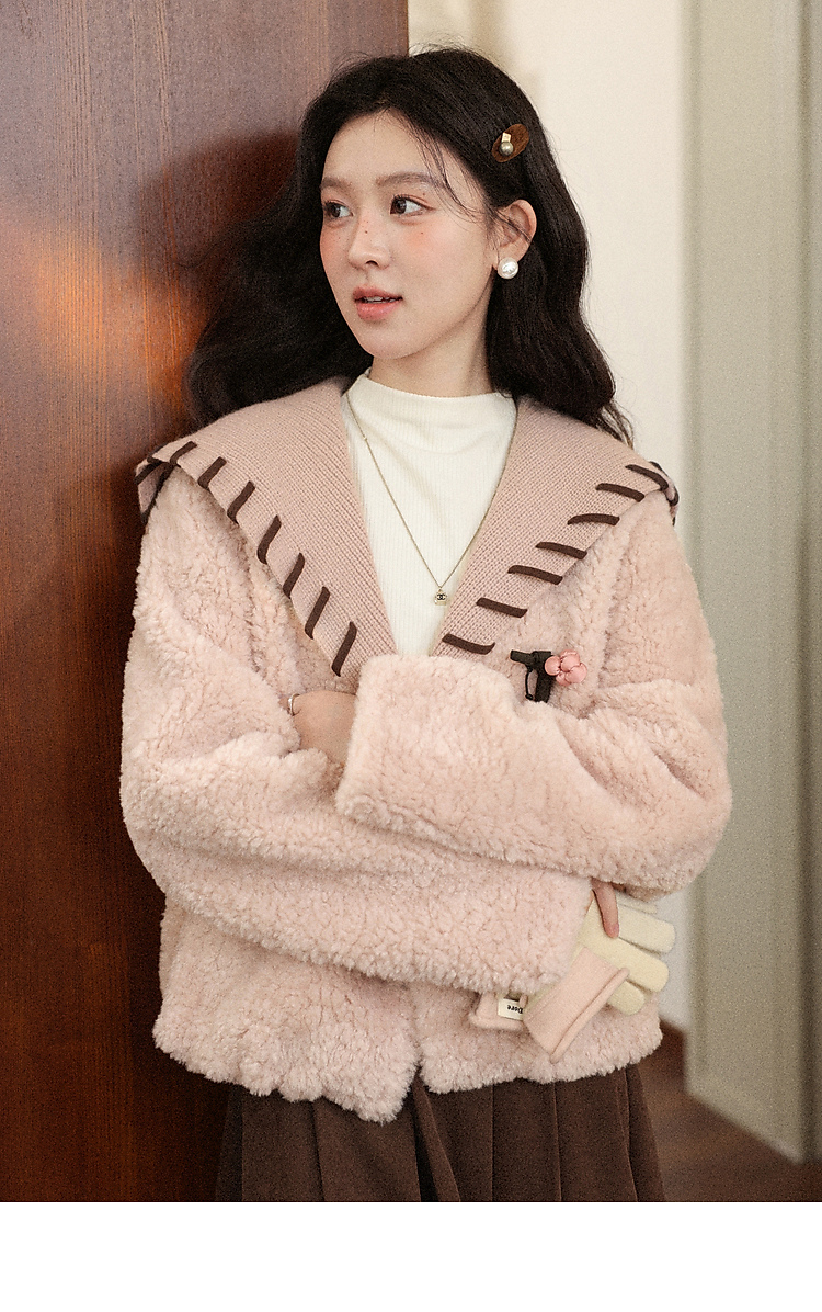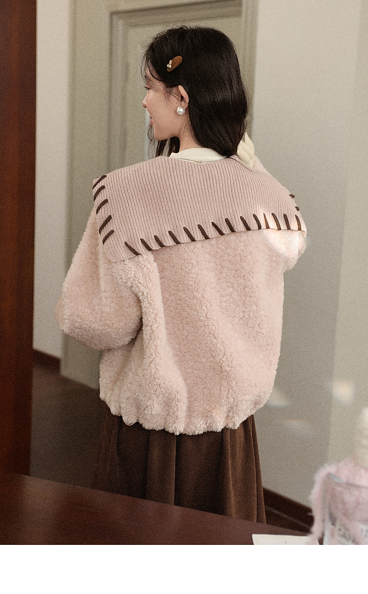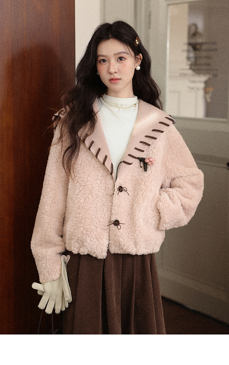 鹿向南「雾都恋人」粉色短外套时尚V领秋冬季外搭开衫小众上衣女