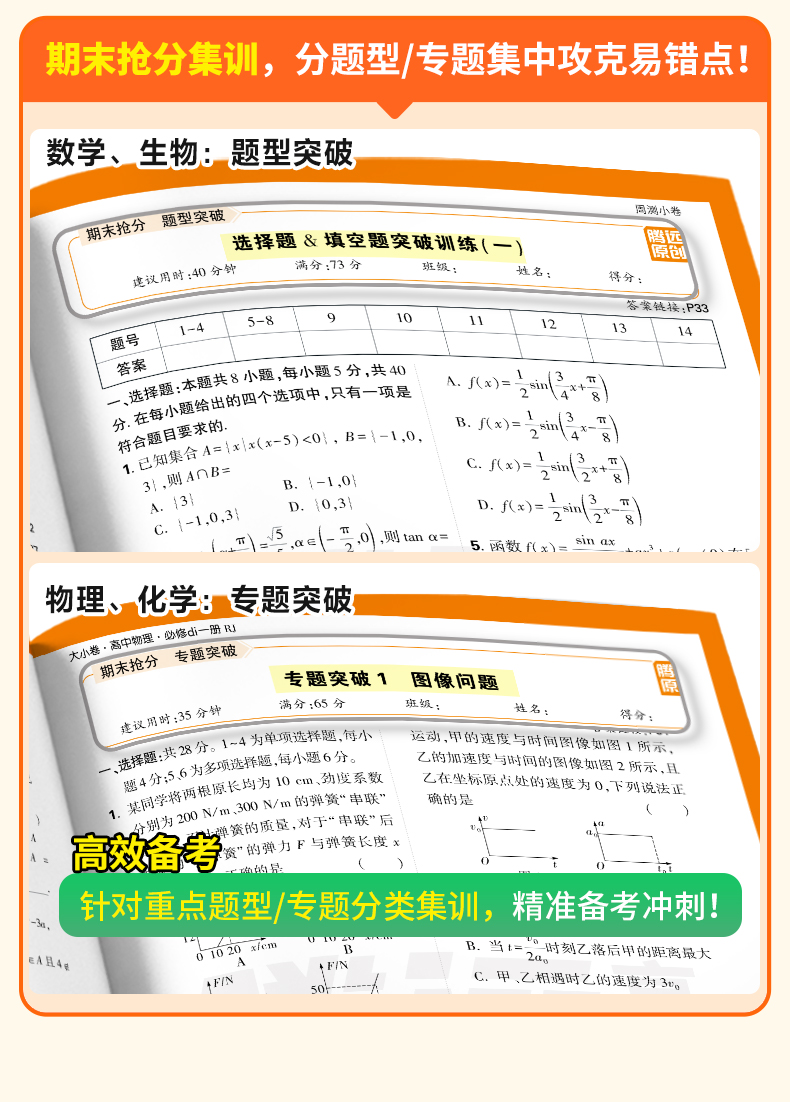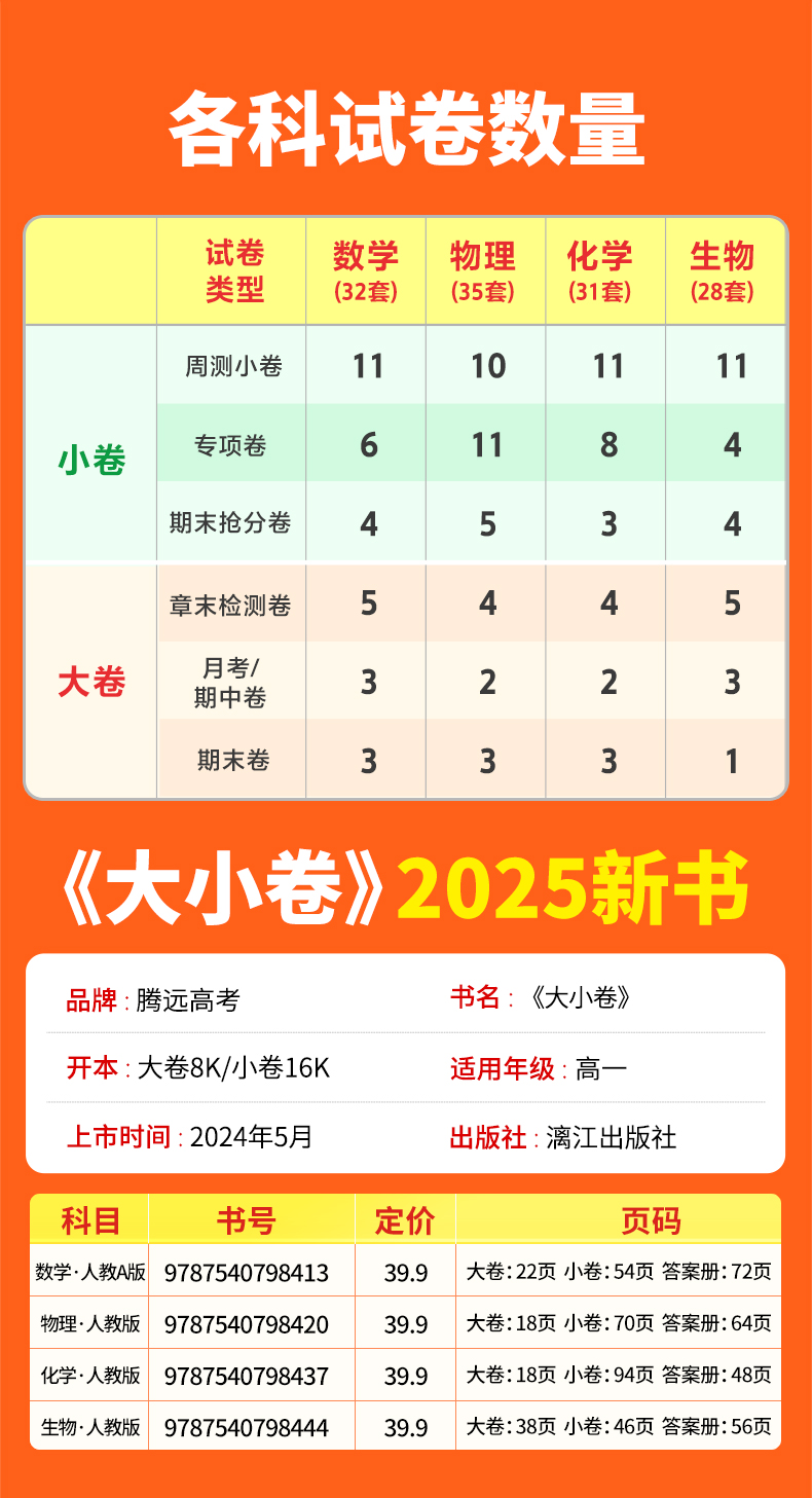 腾远高考2025高一大小卷高中同步测试卷数学物理化学生物必修一二