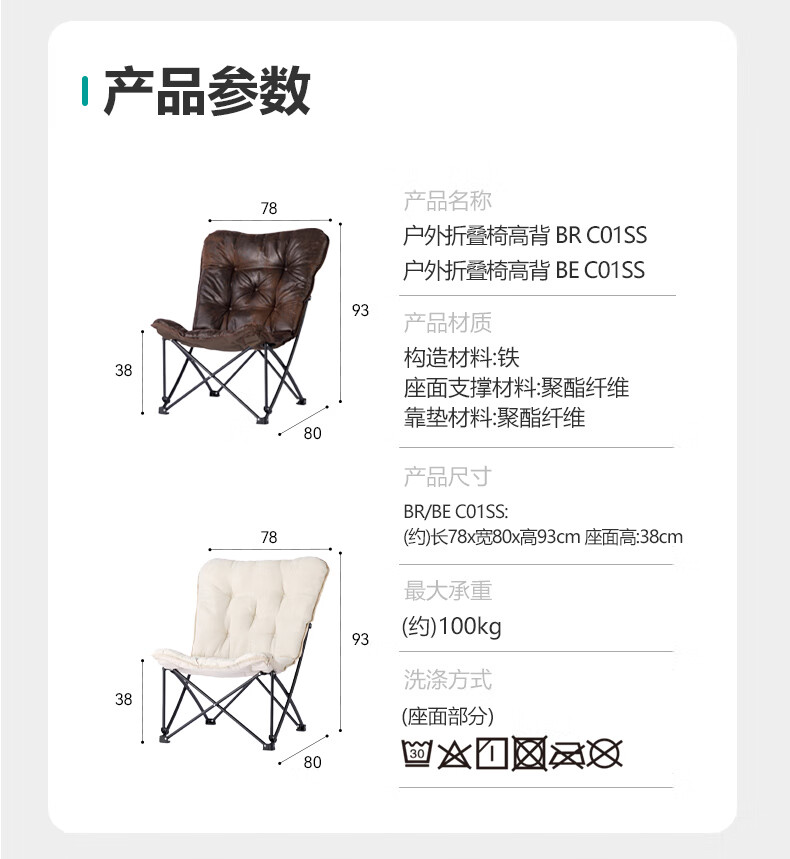 户外午休可折叠椅便携式高背蝴蝶椅/折叠凳 棕色/米色