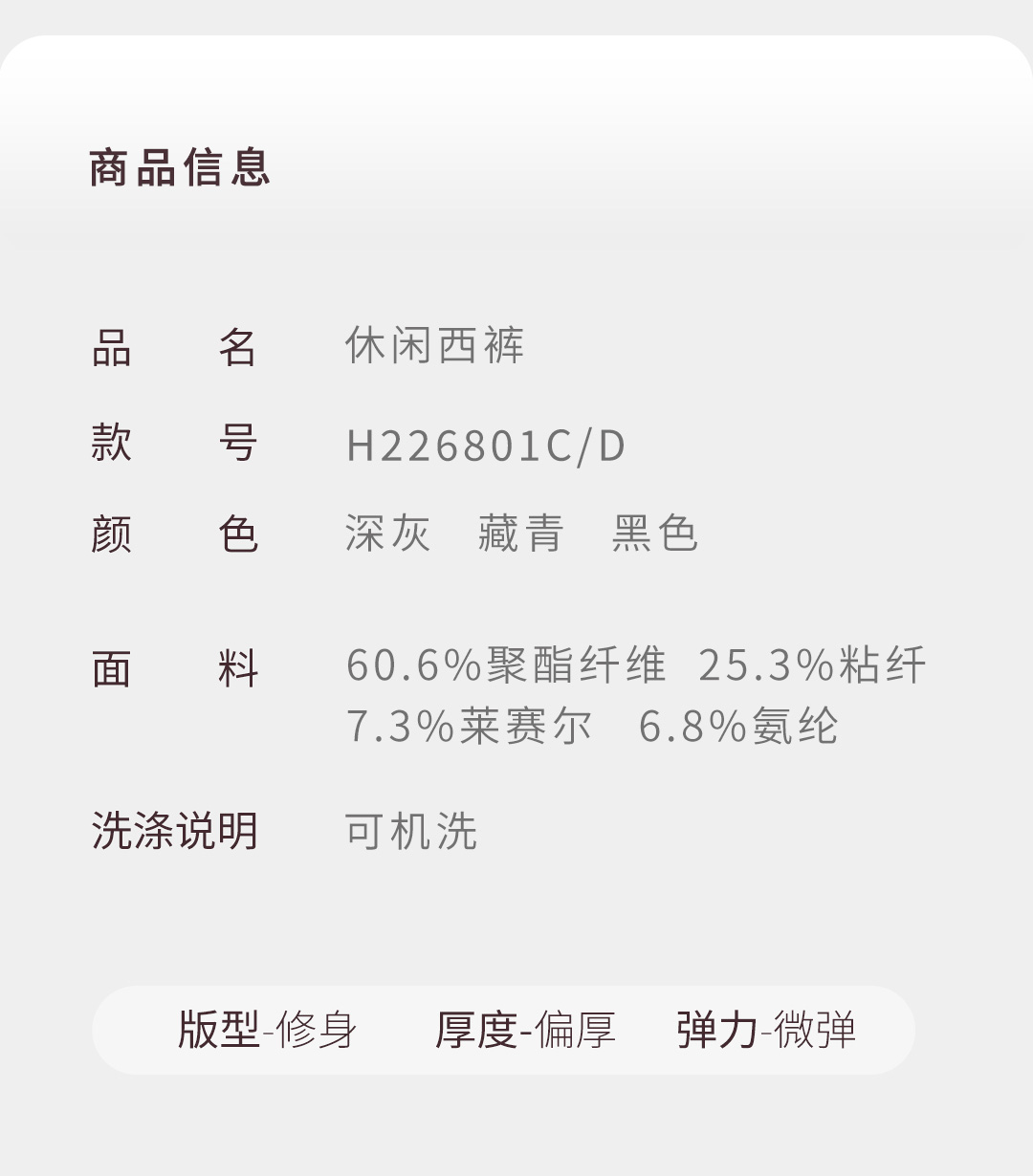 【轻旅系列】总裁天丝二代加绒西裤H226801