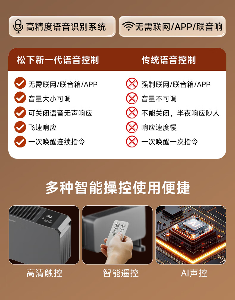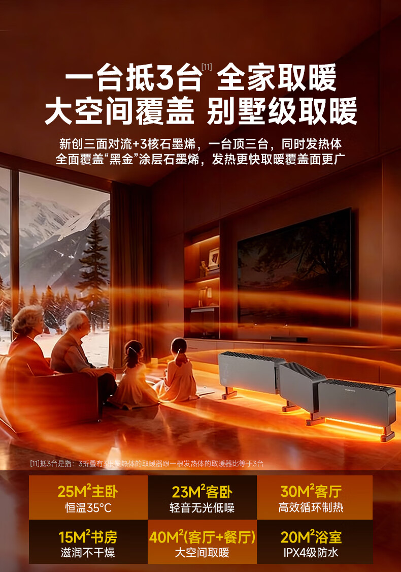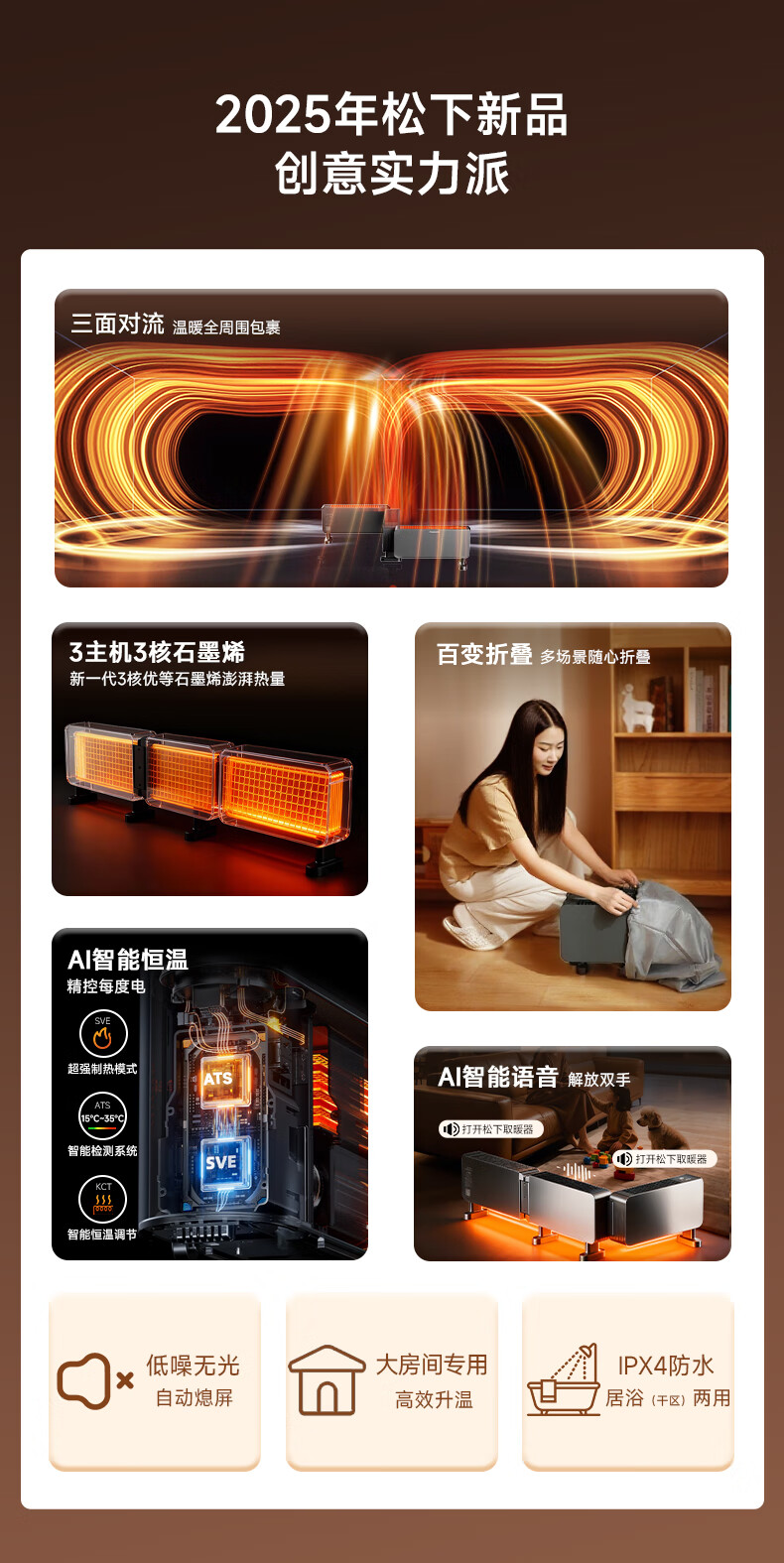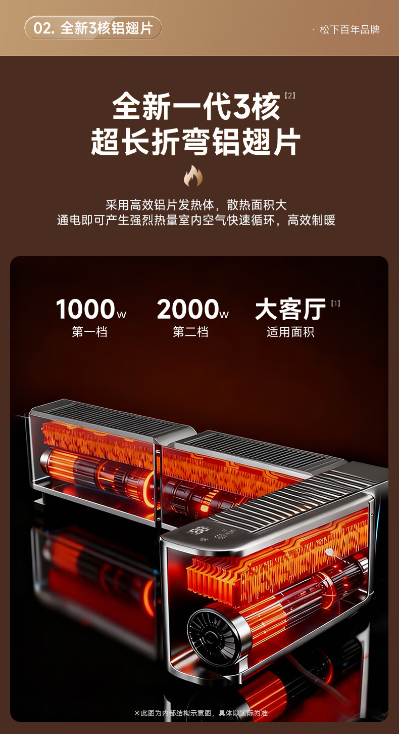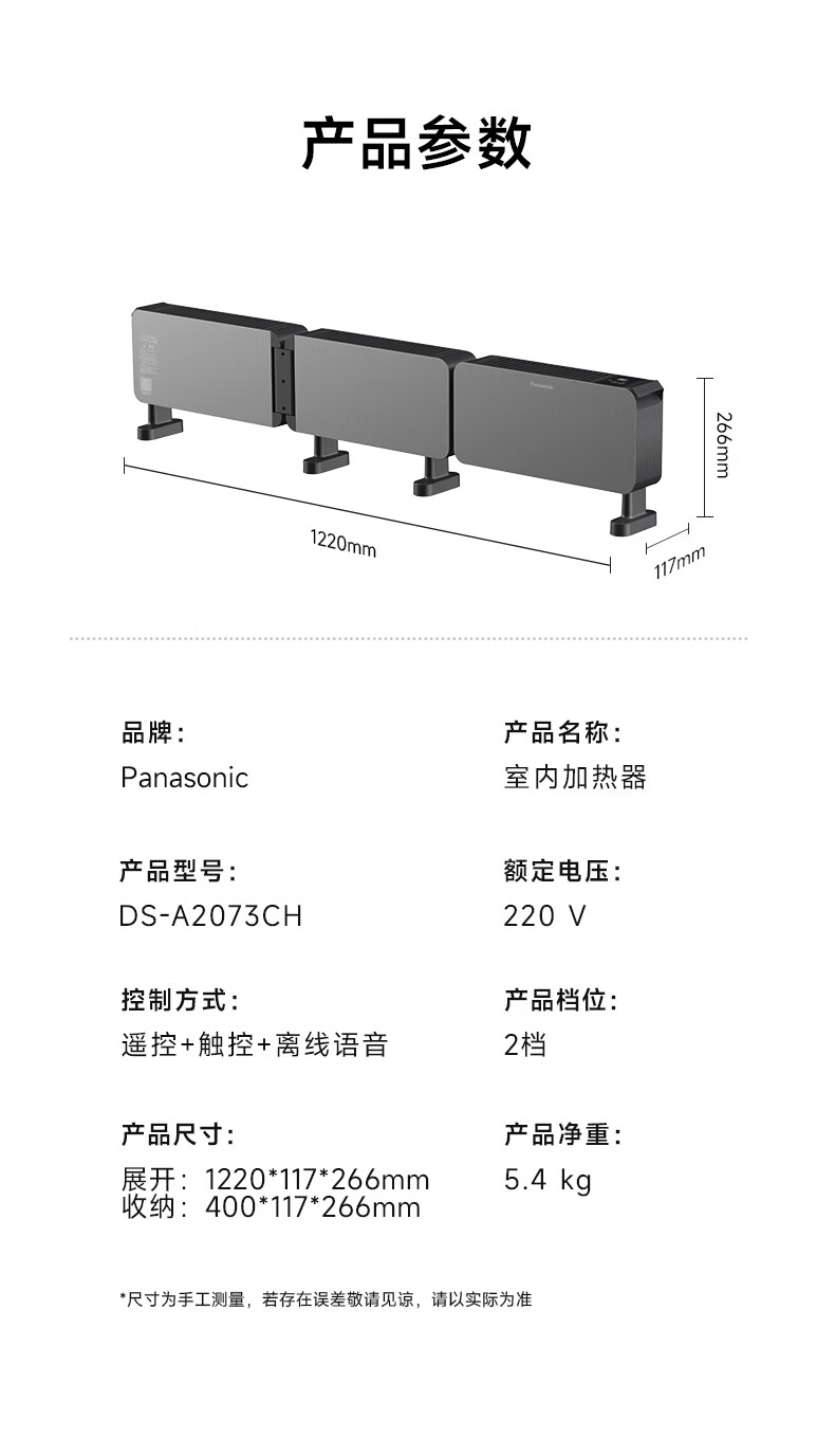 松下石墨烯三折叠遥控踢脚线 DS-A2073CH