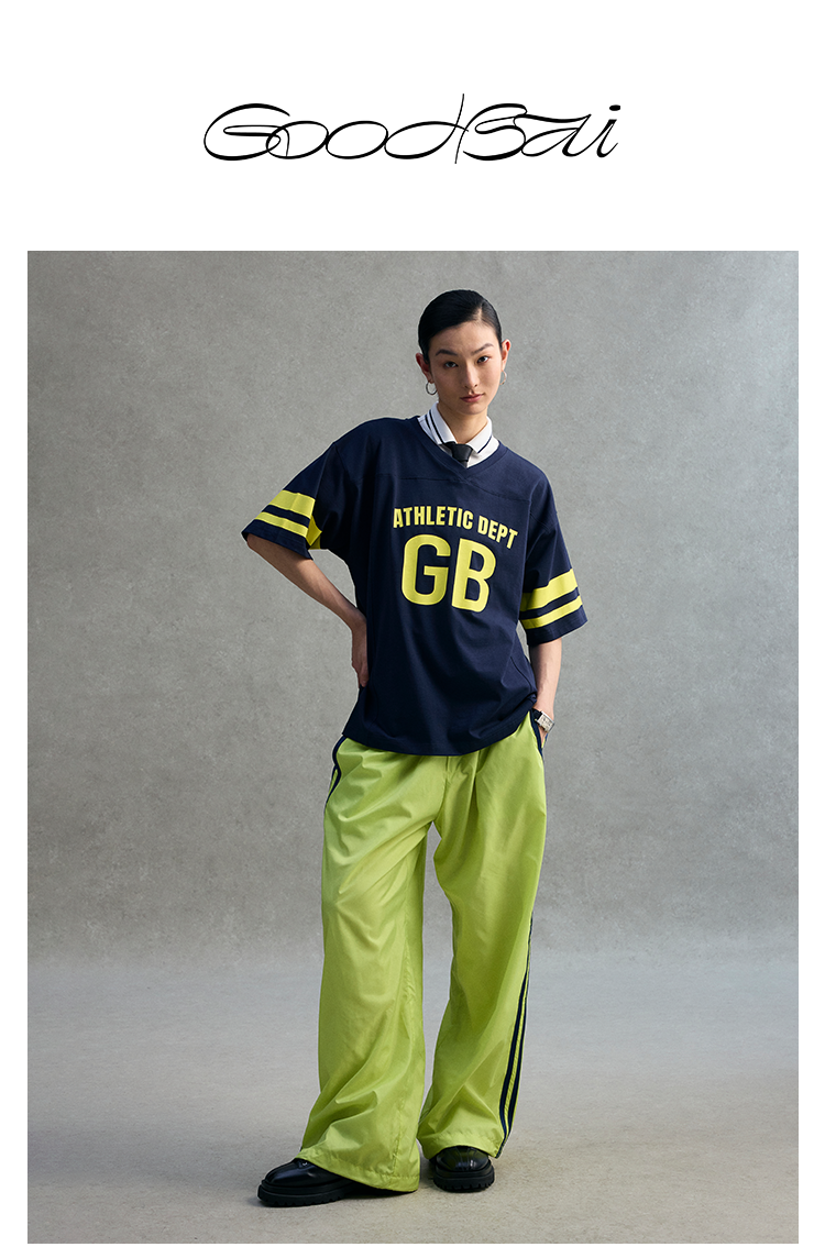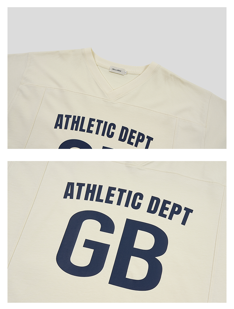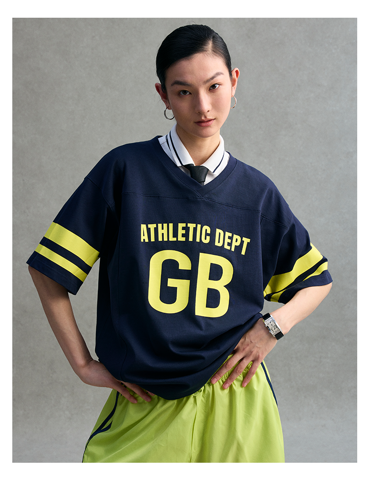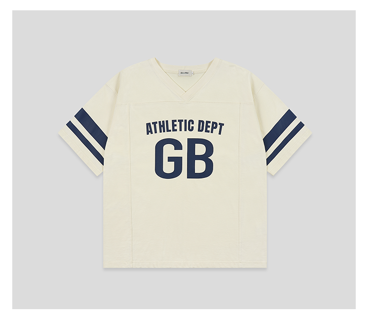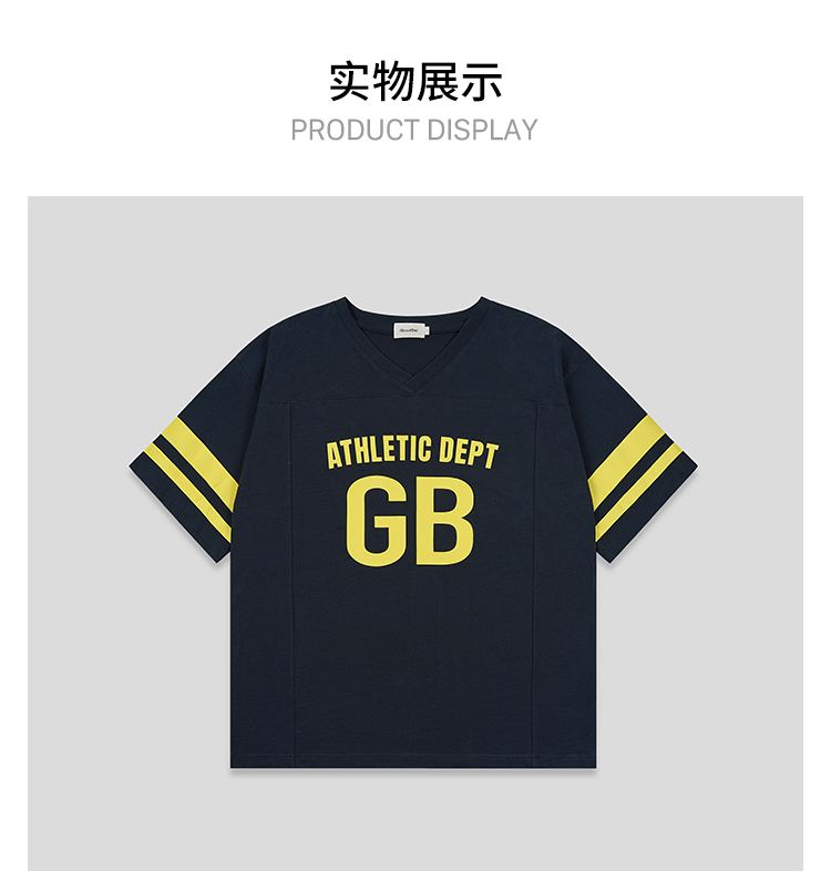 GOODBAI athletic GB logo撞色印花V领拼接宽松短袖T恤