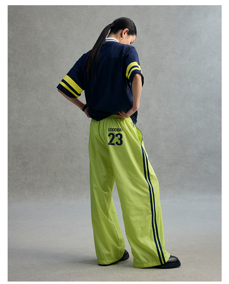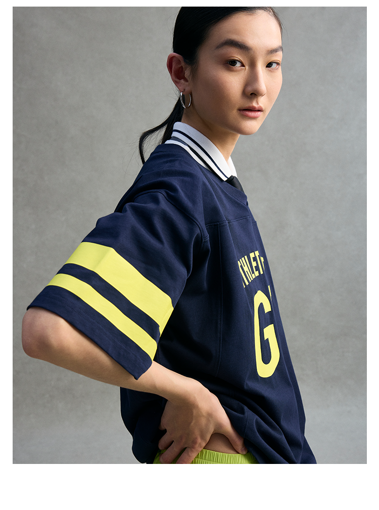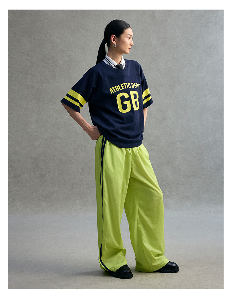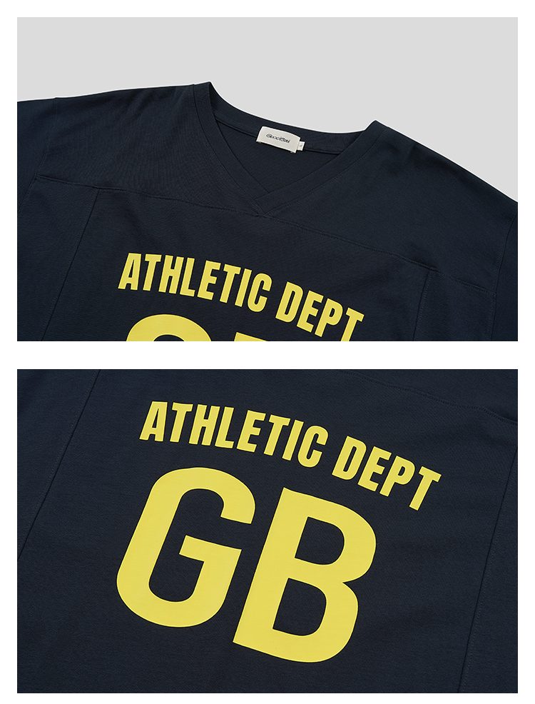 GOODBAI athletic GB logo撞色印花V领拼接宽松短袖T恤