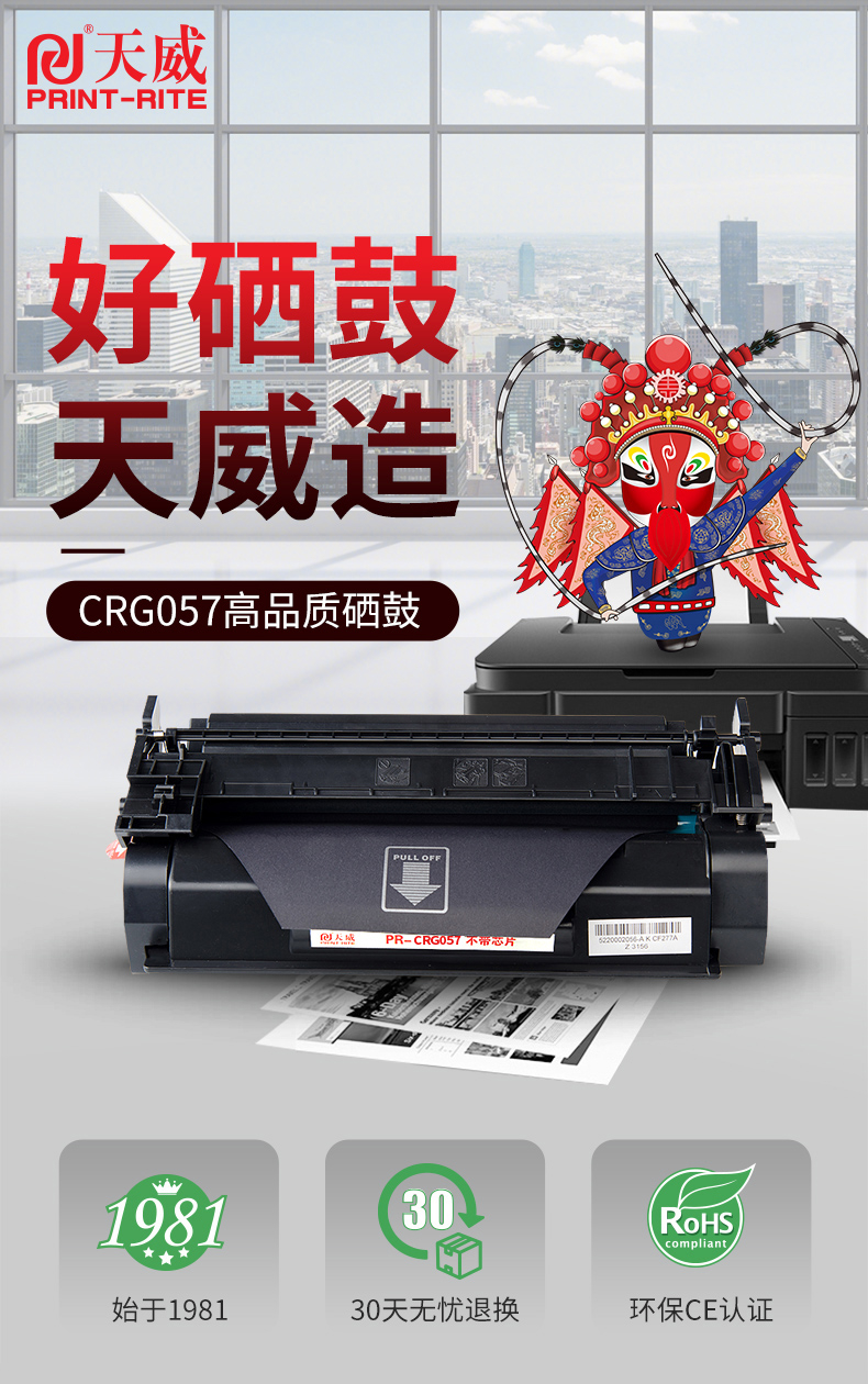- 天威耗材始于1981年,主营硒鼓、墨盒、色带等办公耗材商品,中国知名通用打印耗材倡导者和生产商。