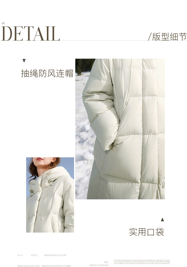 【90白鹅绒】三彩2025冬季新款宽松长款羽绒服防水易打理被子服M