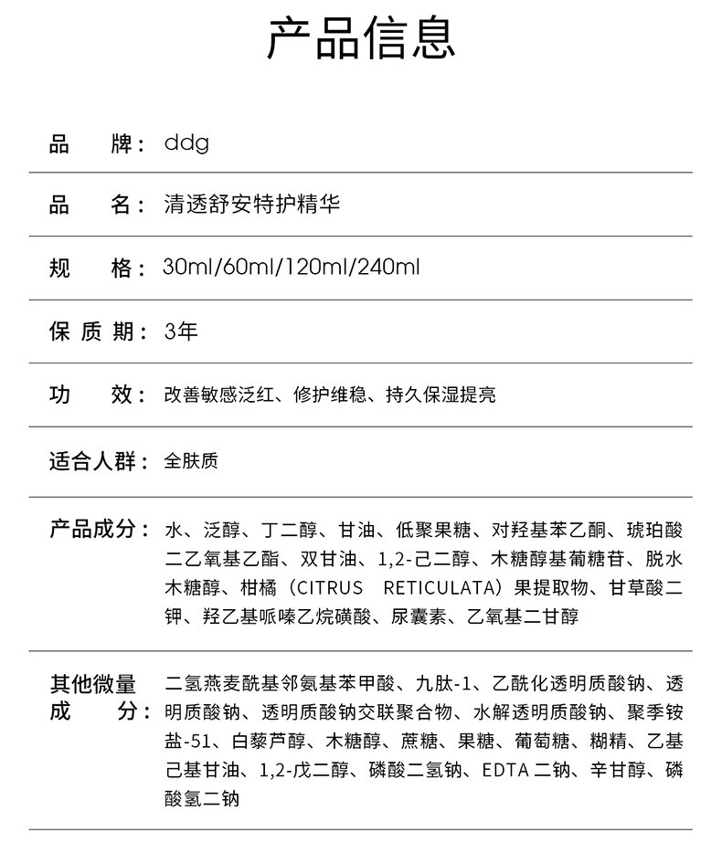 ddg 清透舒安特护精华 30ml/60ml/120ml/240ml 511特护精华清爽版3.0