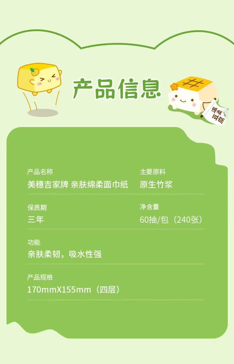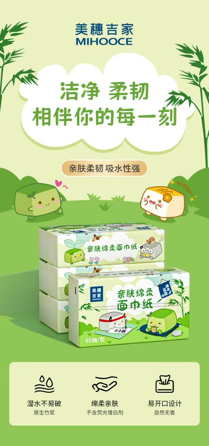 美穗吉家 亲肤绵柔面巾纸 原生竹浆4层60抽
