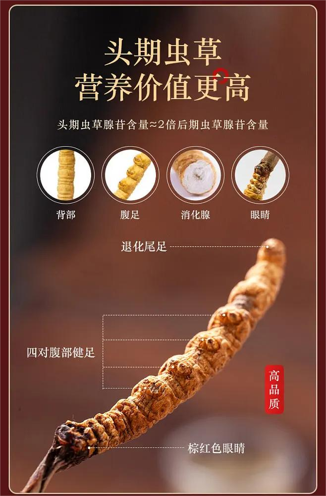 冬虫夏草含有虫草素、氨基酸、多糖、有机酸、核苷等多种成分