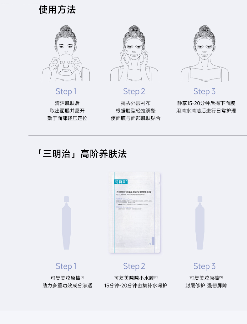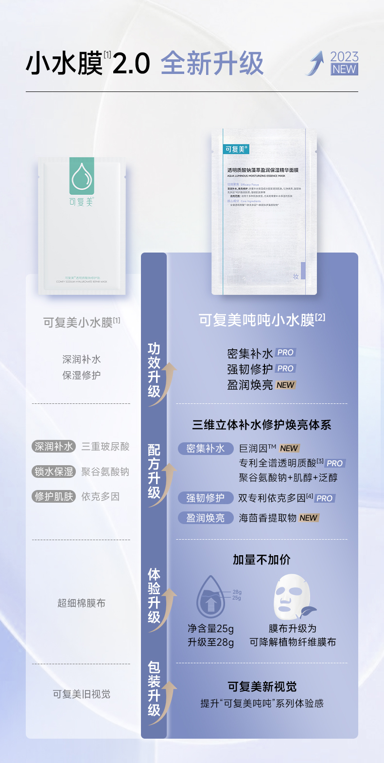 可复美透明质酸钠藻萃盈润保湿精华面膜28g*5片/盒(吨吨小水膜)
