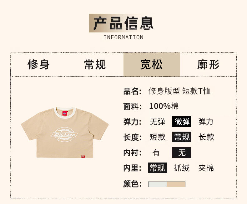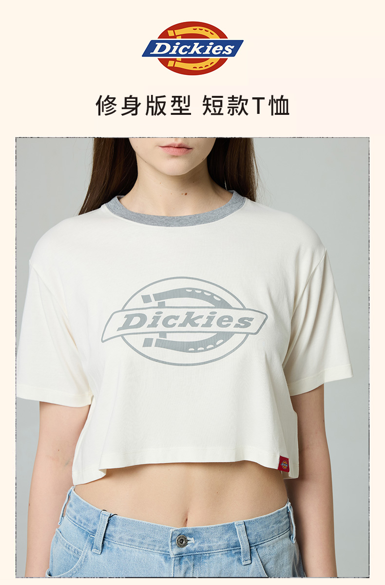Dickies弹力修身短款T恤 前胸LOGO印花女式短袖 DK0A88E6
