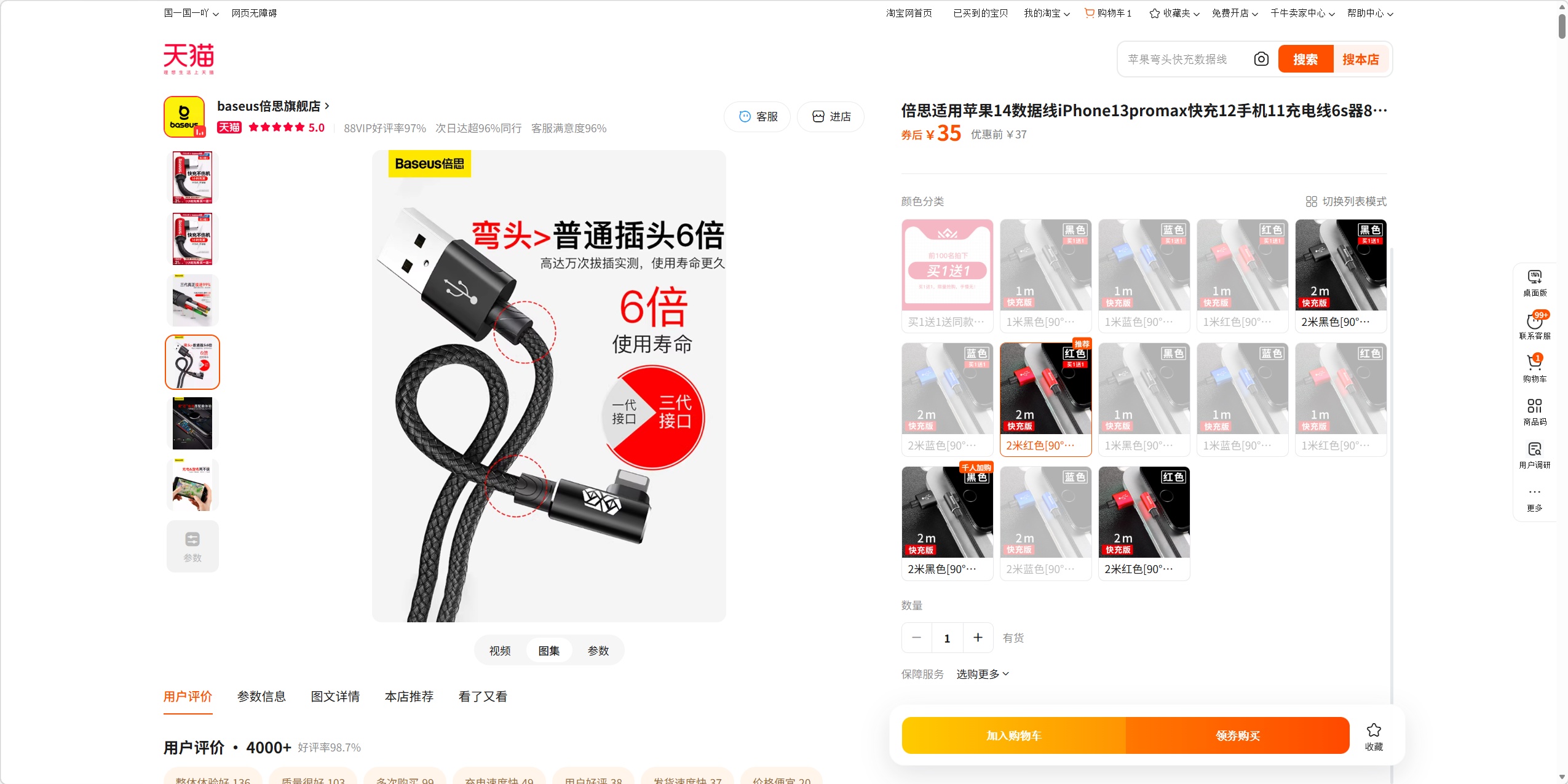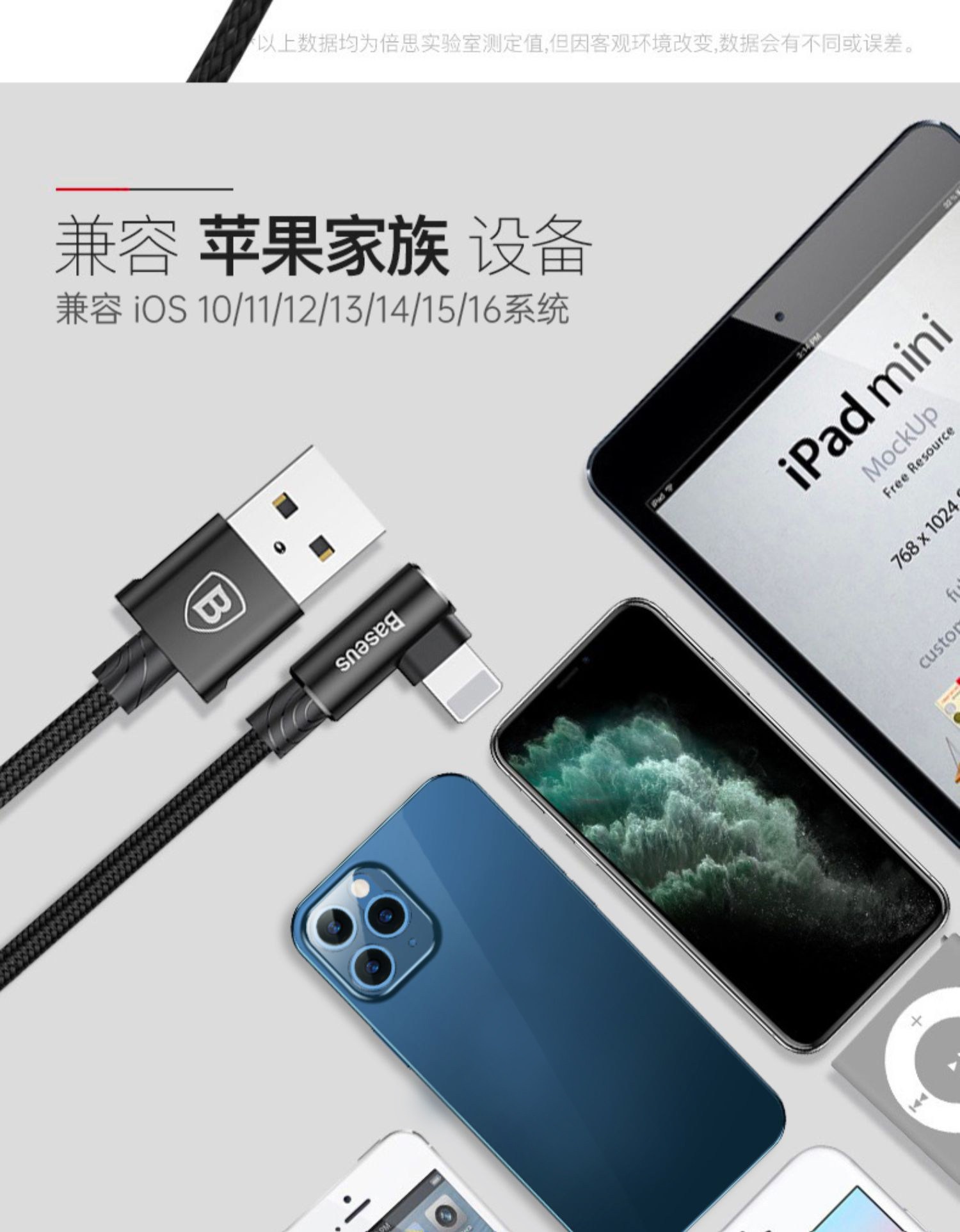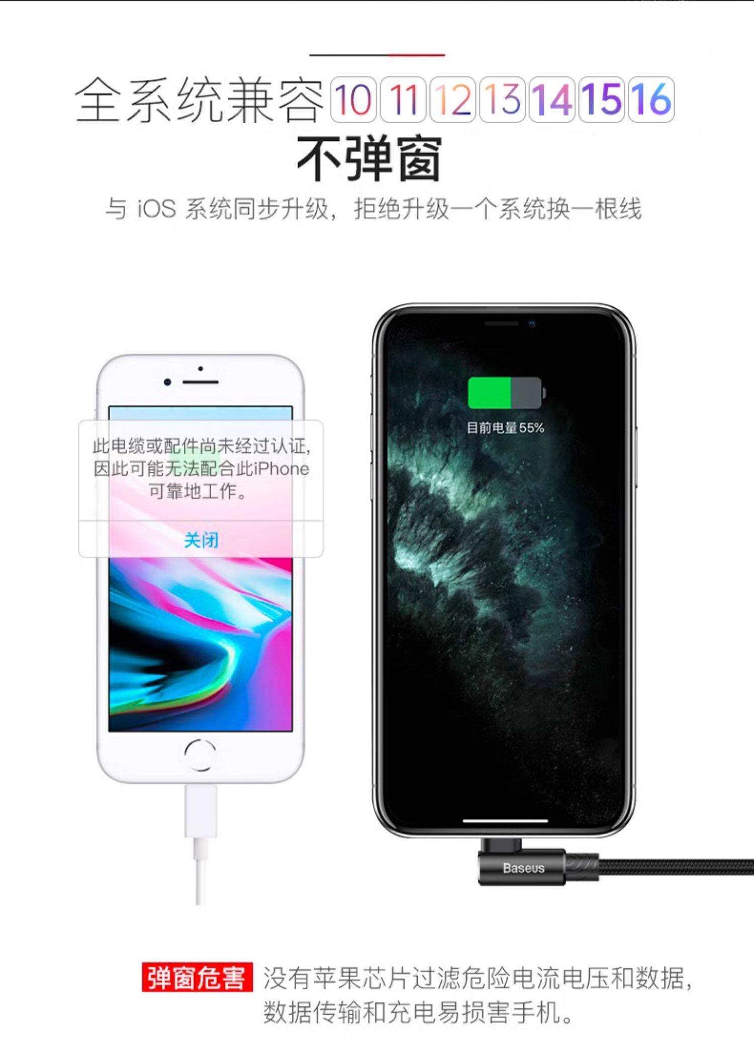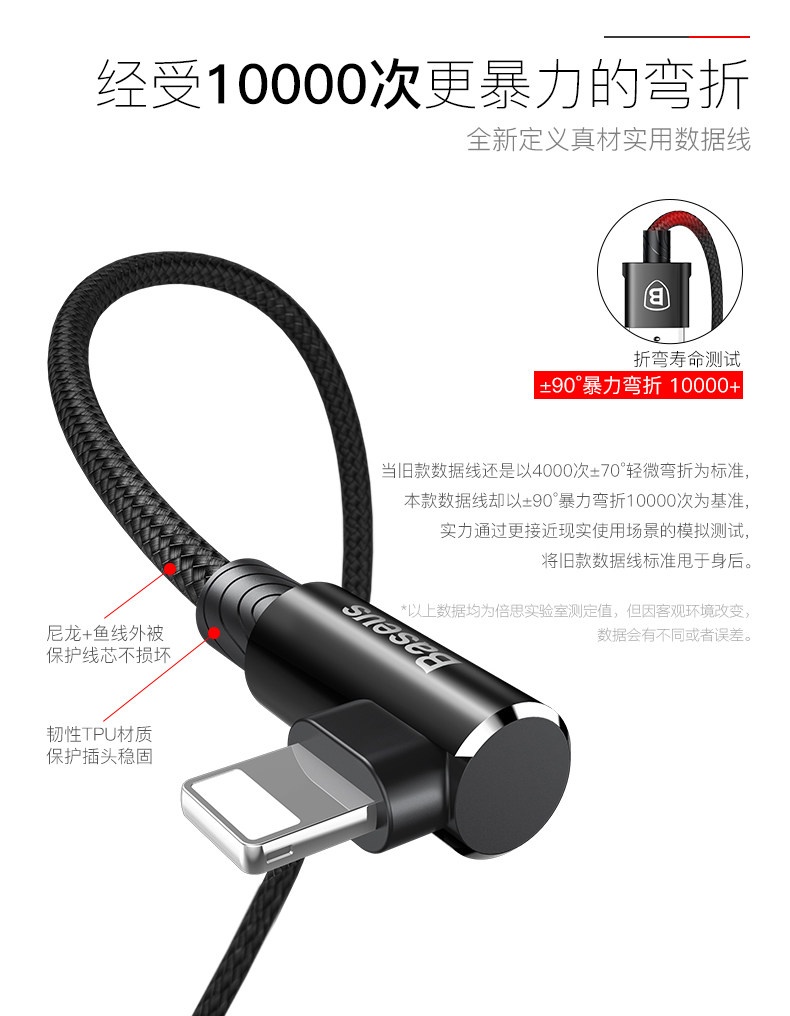 BASEUS/倍思 USB转lightning口(苹果口)MVP弯头手游充电数据线
