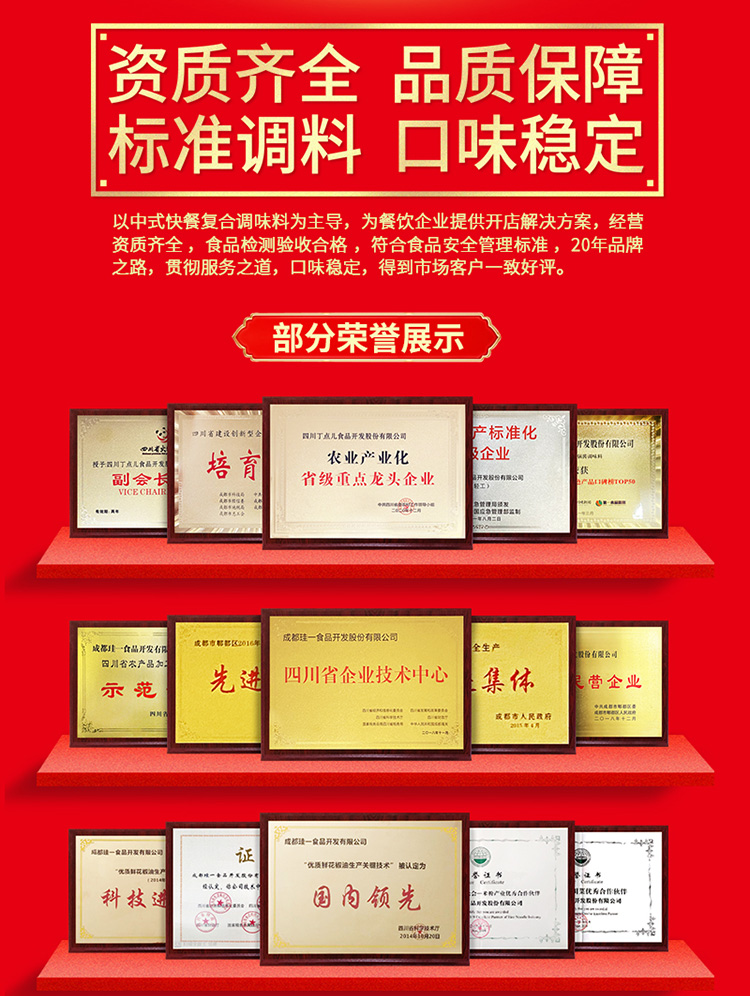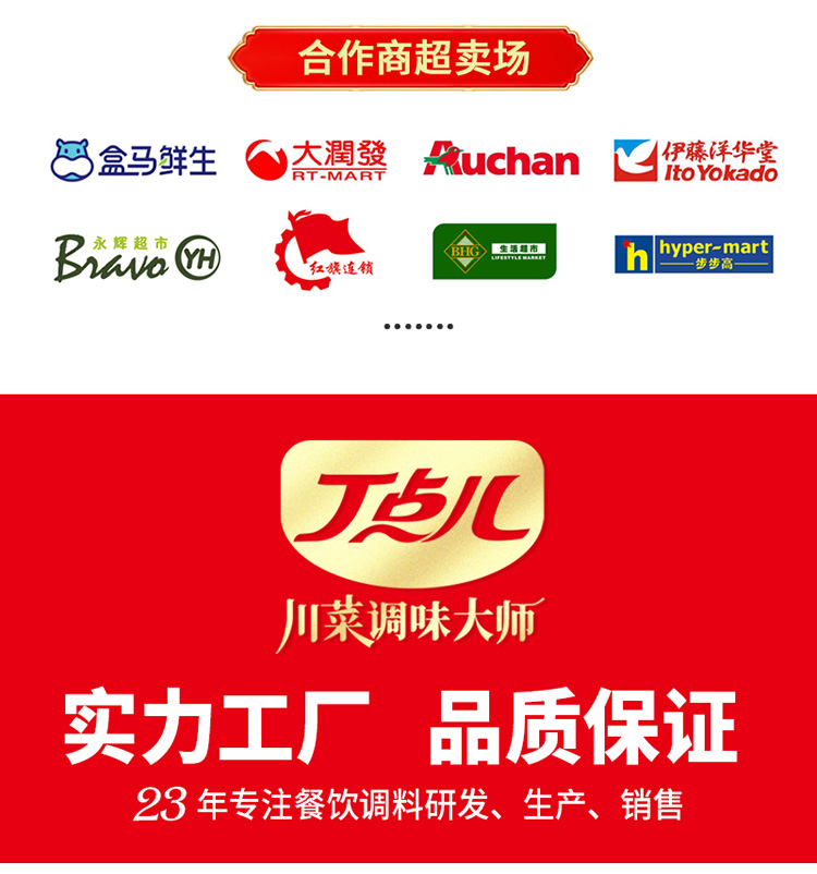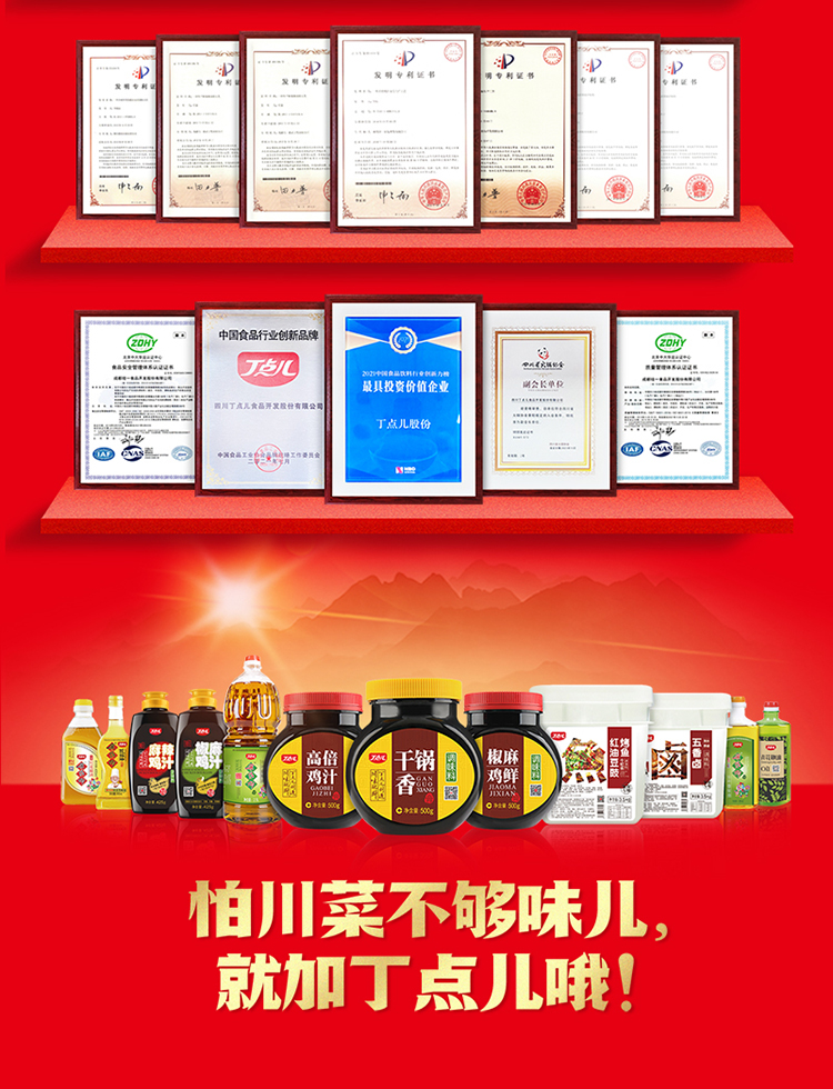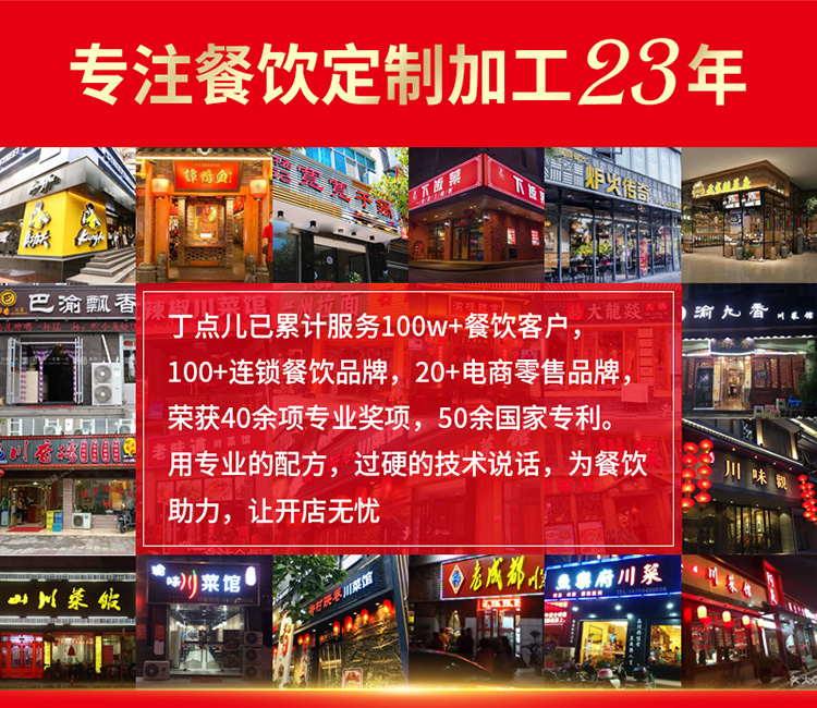 四川丁点儿食品开发股份有限公司,是集川菜调味料研发、生产、销售、服务为一体的现代化企业,专注为餐饮客户提供川菜调味解决方案。公司成立至今,服务了超百万家的餐饮门店以及连锁品牌。