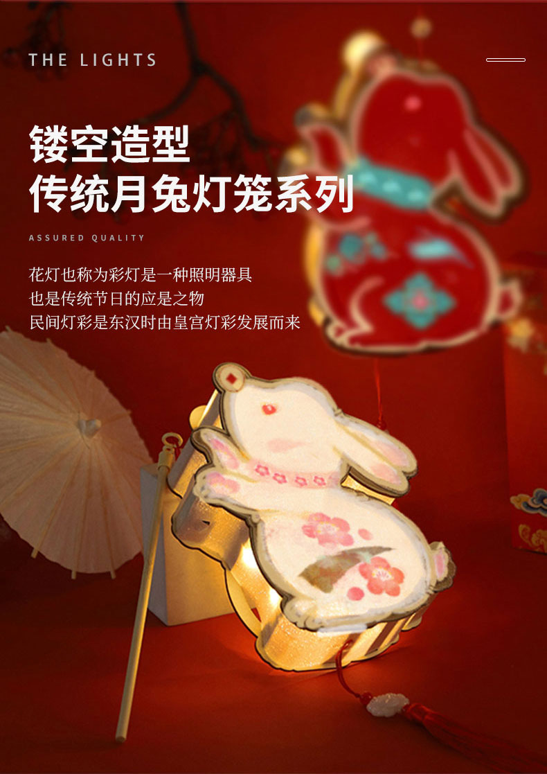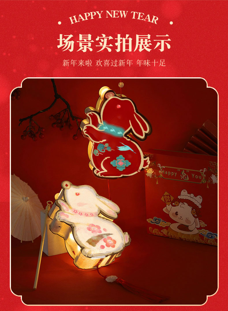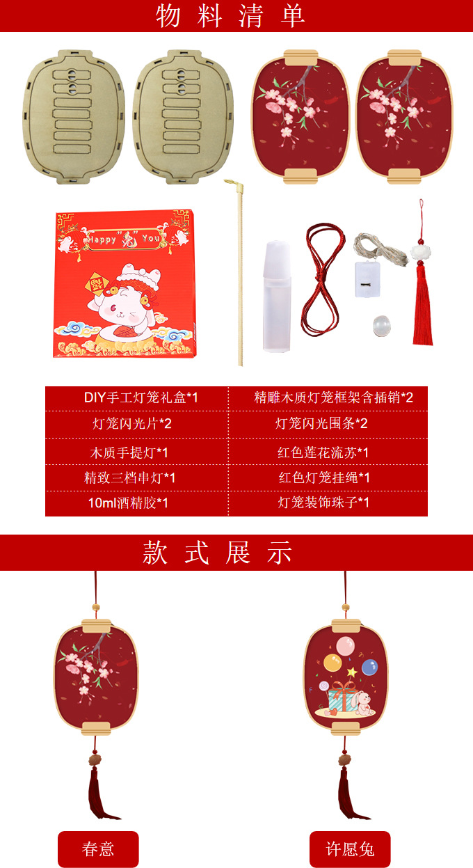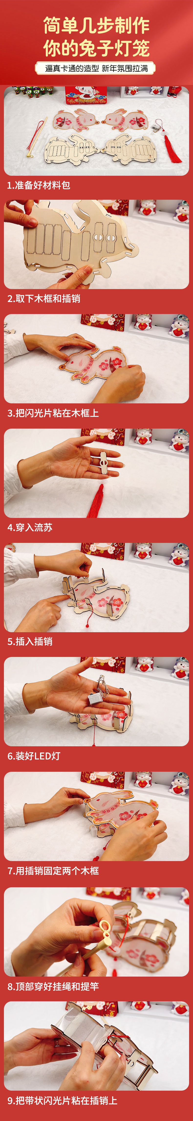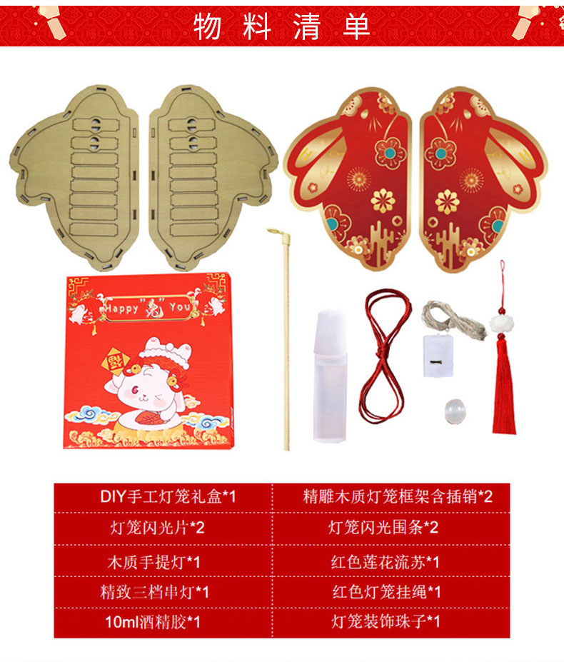 严选 | 新春元宵节精雕木质手工DIY灯笼 手工制作材料包儿童手提新年兔子花灯