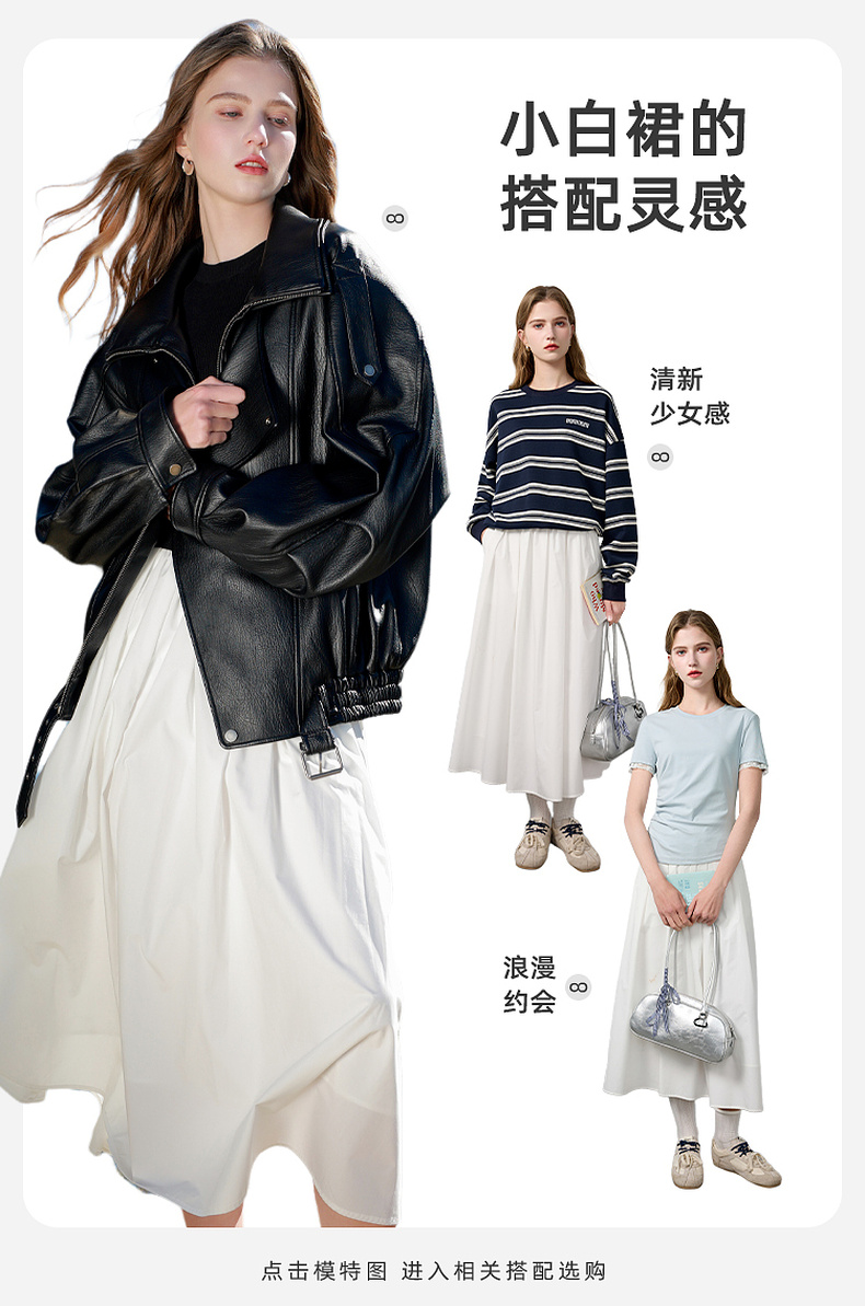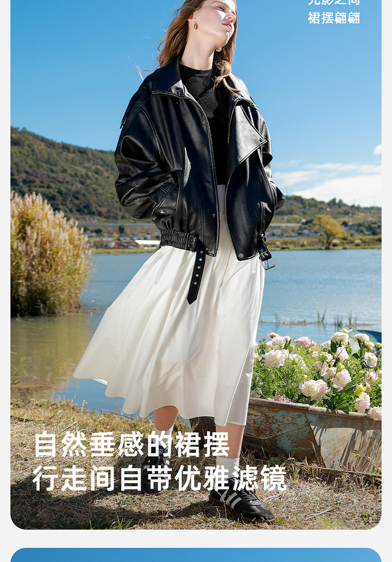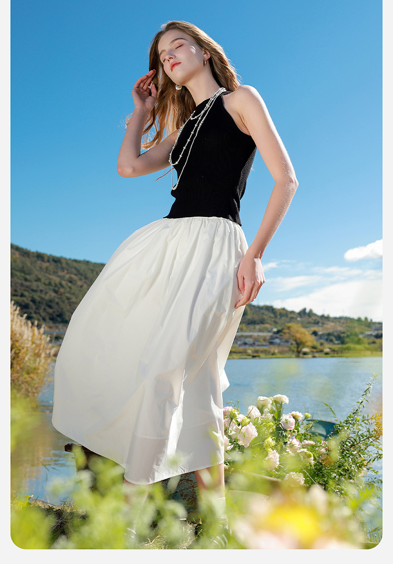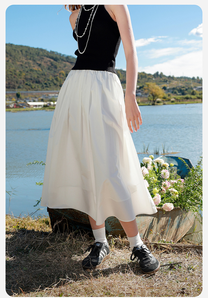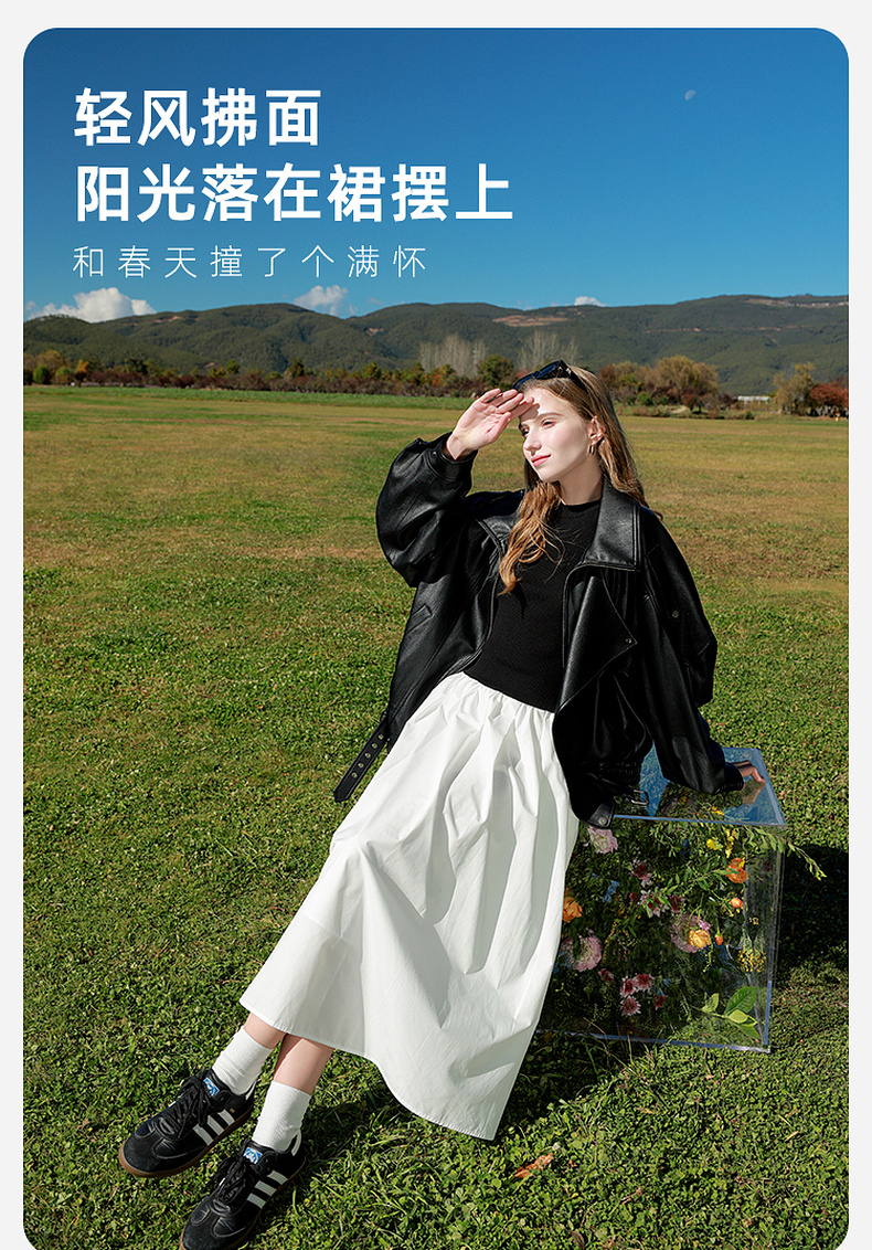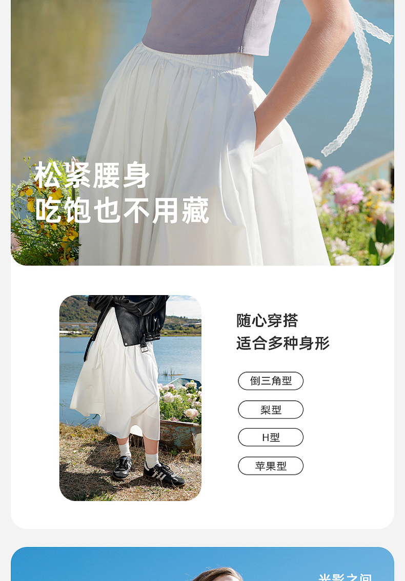 三彩2025春季新款松紧高腰小白裙半身裙氛围感长裙A字大摆Z