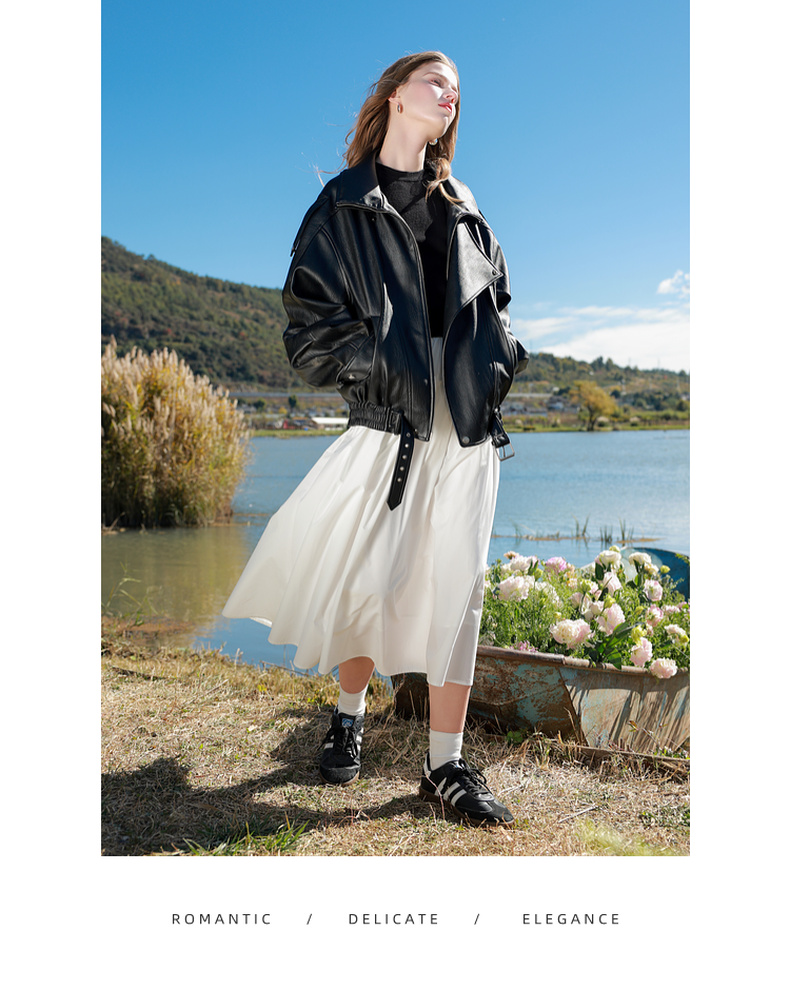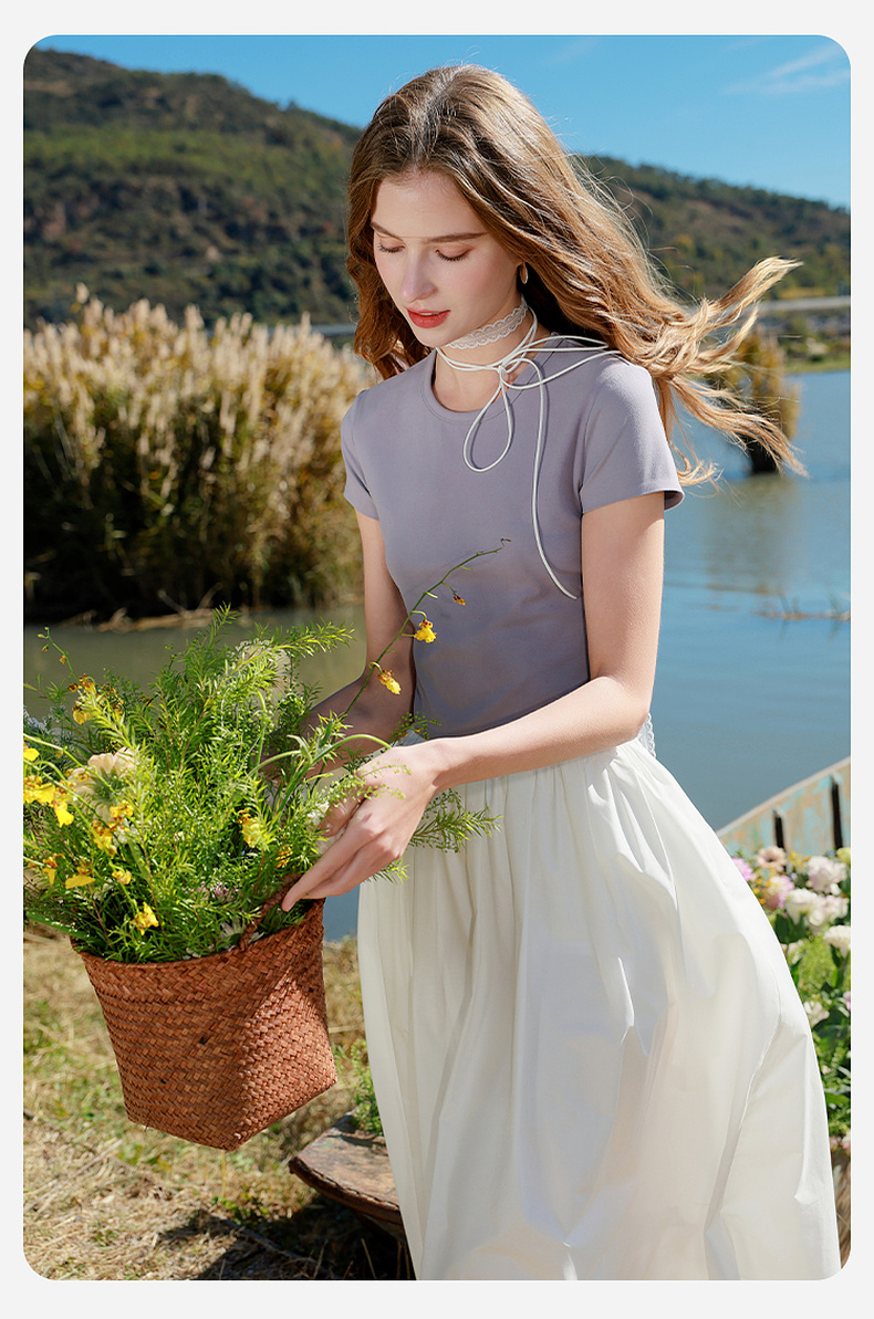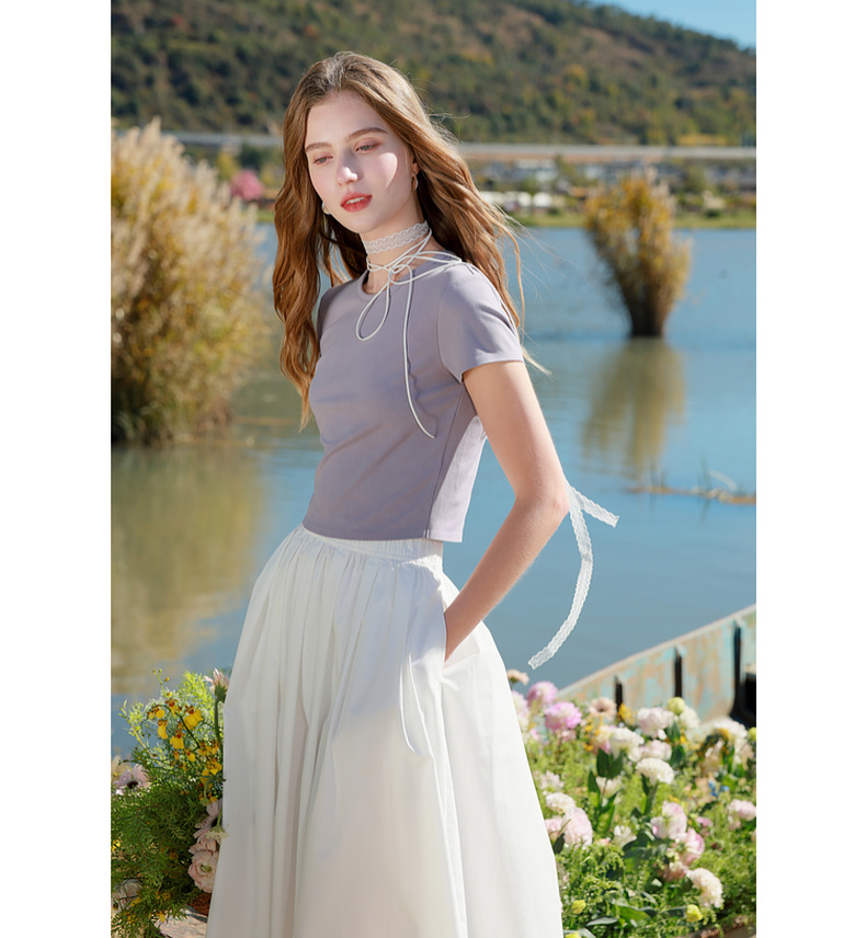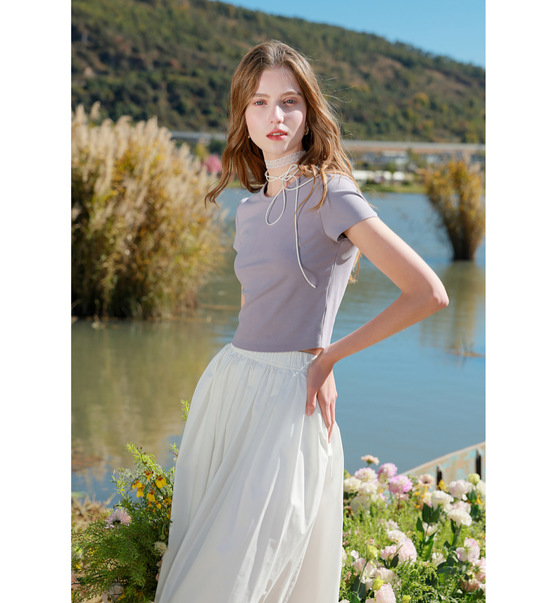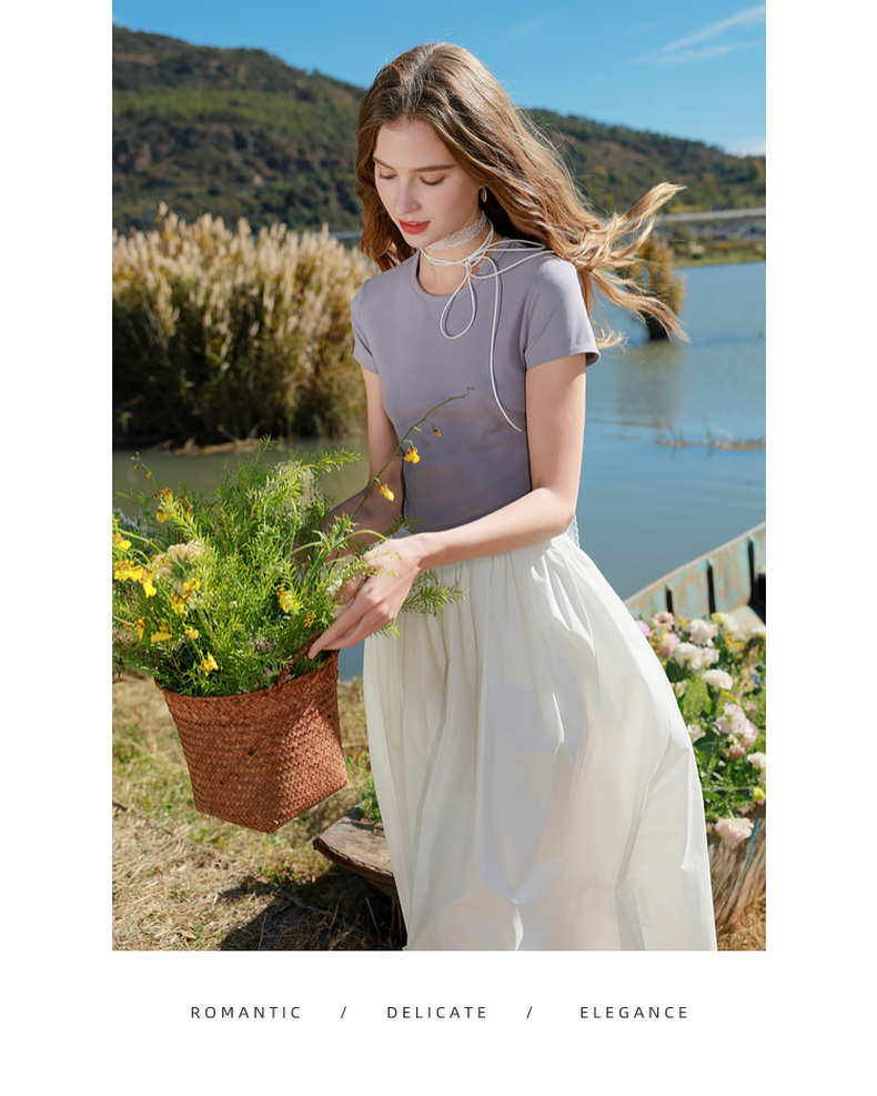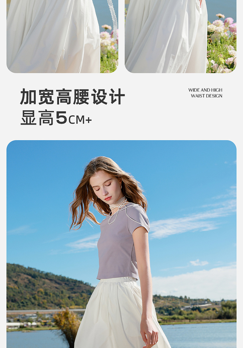 三彩2025春季新款松紧高腰小白裙半身裙氛围感长裙A字大摆Z