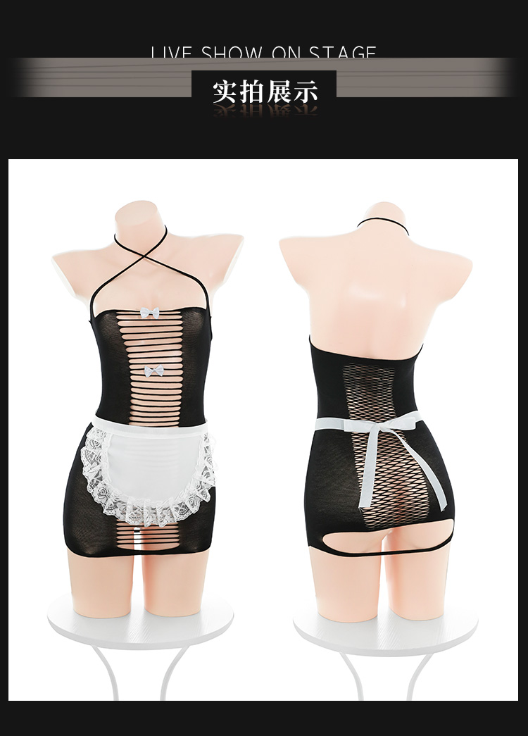 【情趣内衣】霏慕 无菌免洗 娇俏女仆可露胸网衣制服ZY56