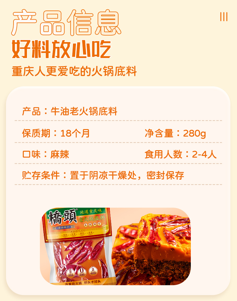 重庆桥头火锅底料280g手工牛油老火锅麻辣烫家用