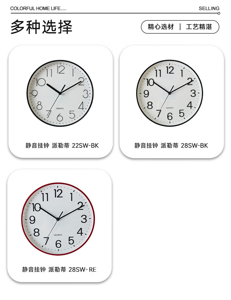 家用现代简约钟表客厅卧室挂钟静音时钟 派勒蒂