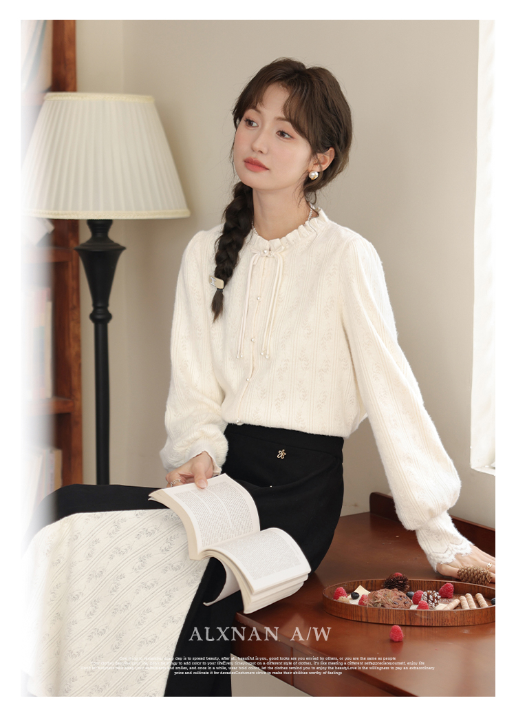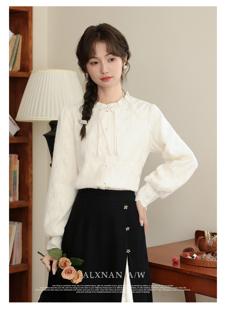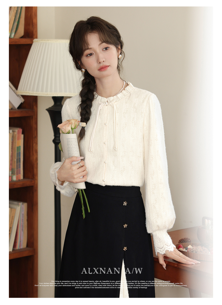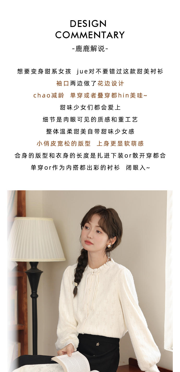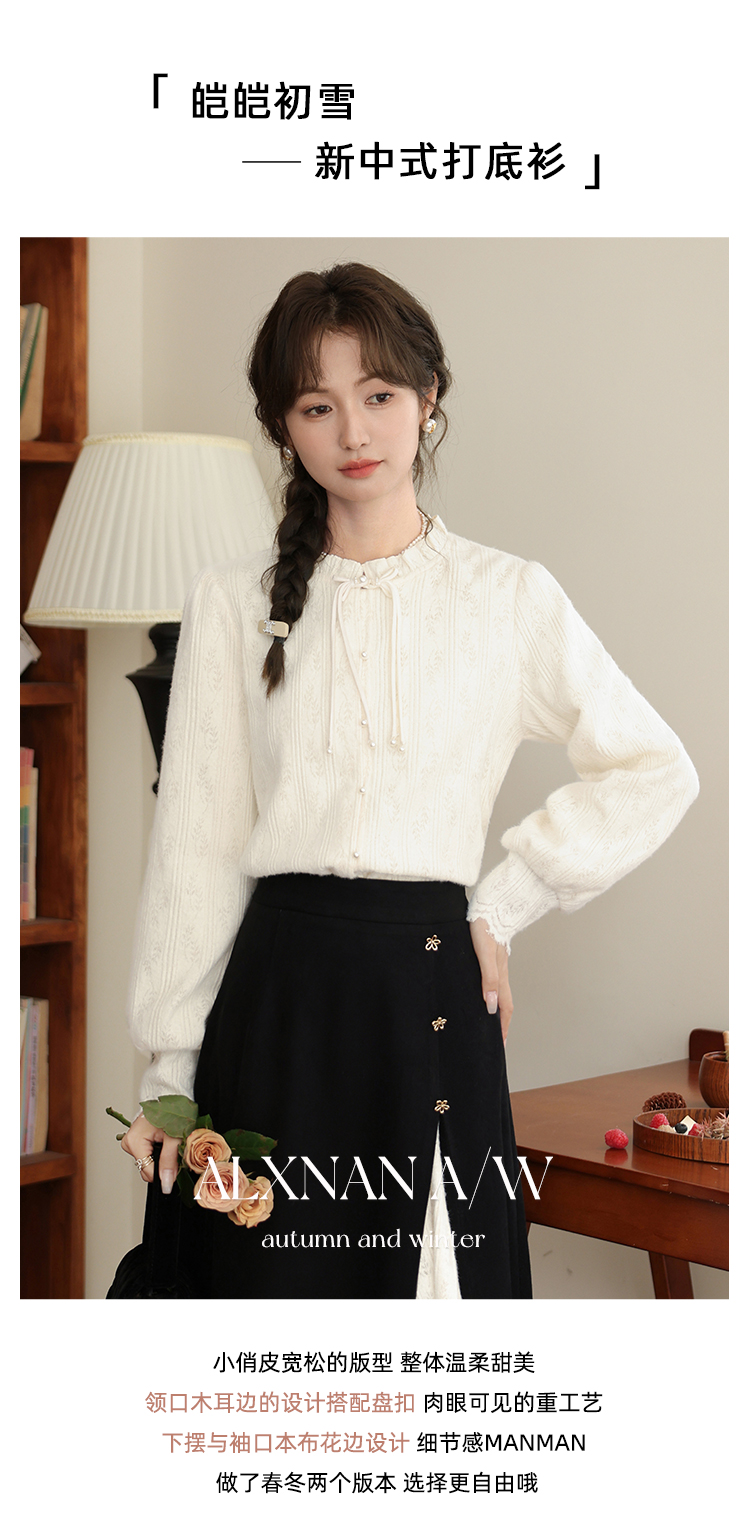 鹿向南「皑皑白雪」国风新中式米白色衬衫女秋冬长袖内搭打底上衣