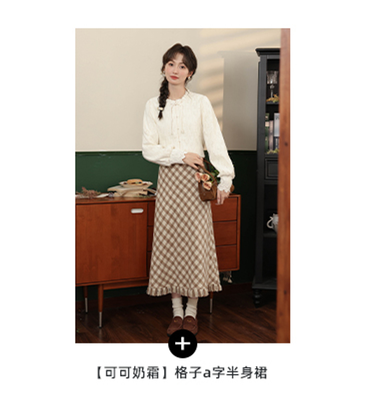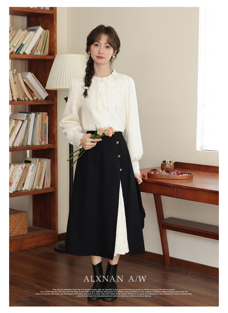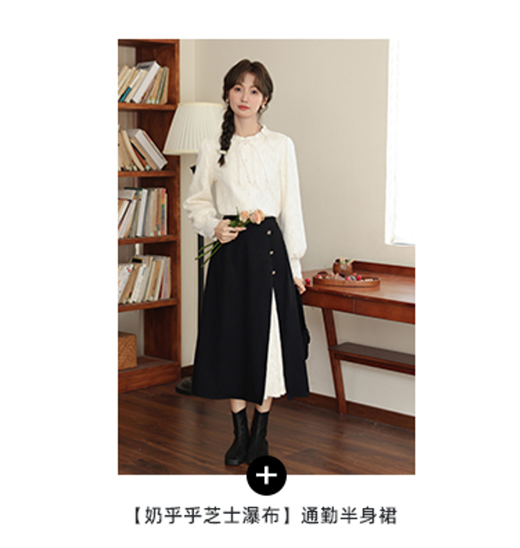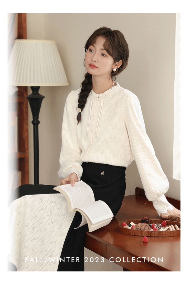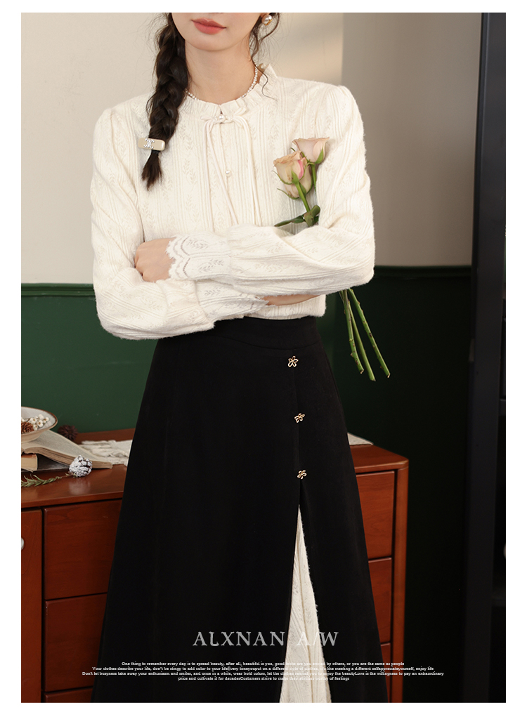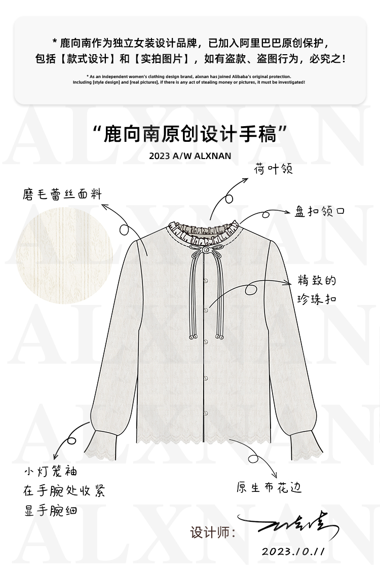 鹿向南「皑皑白雪」国风新中式米白色衬衫女秋冬长袖内搭打底上衣