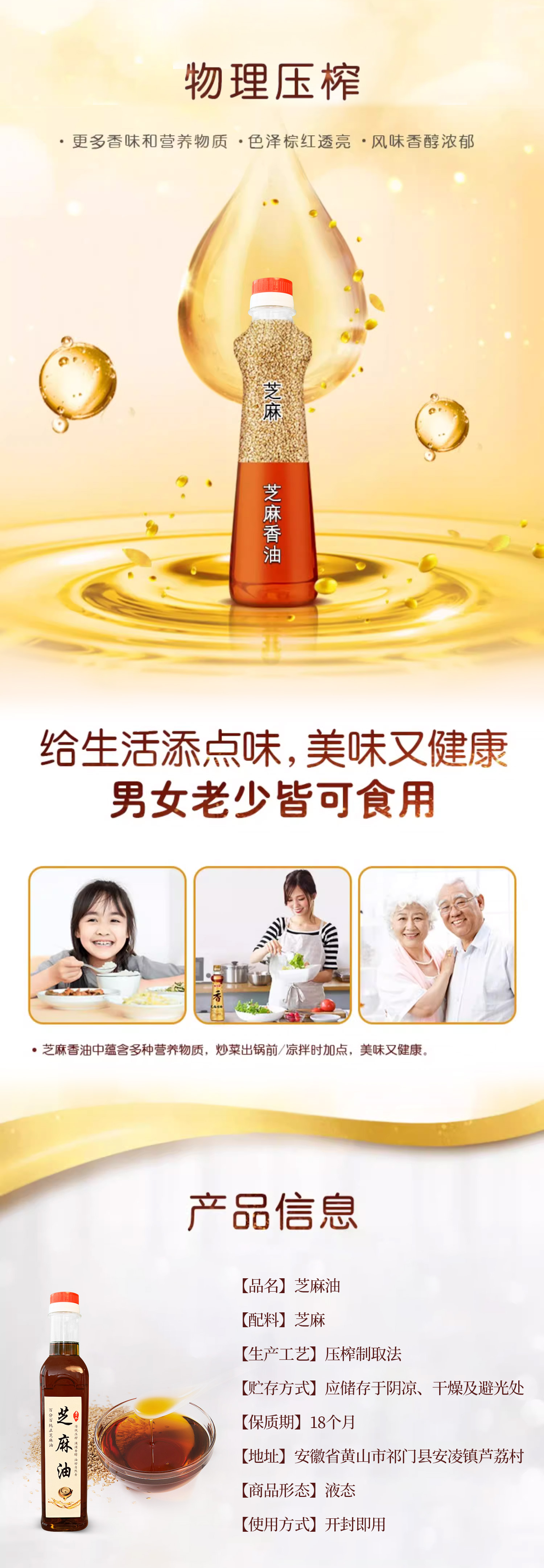 【芦荔】手工芝麻香油 家用调味瓶装油 拌菜 纯芝麻原料