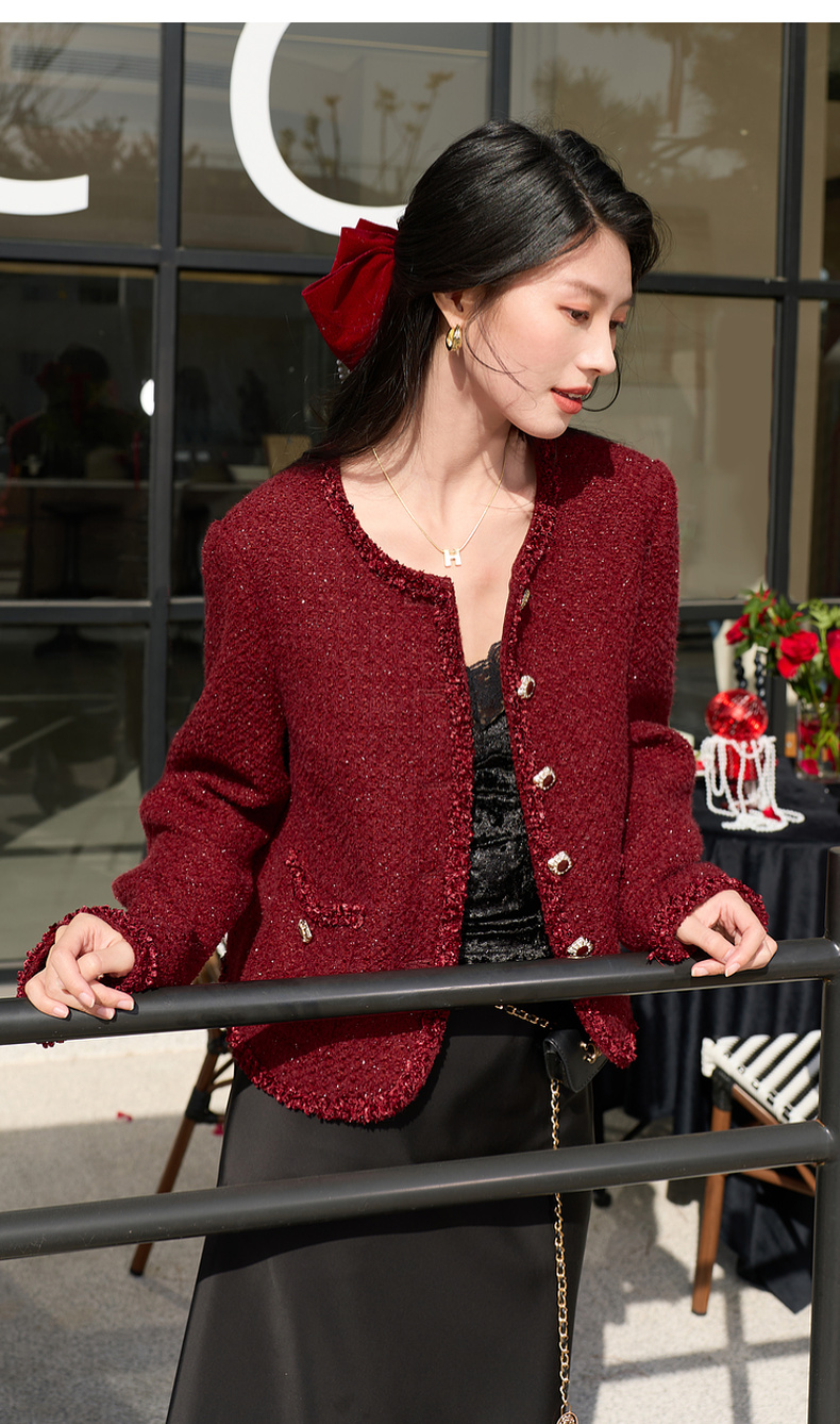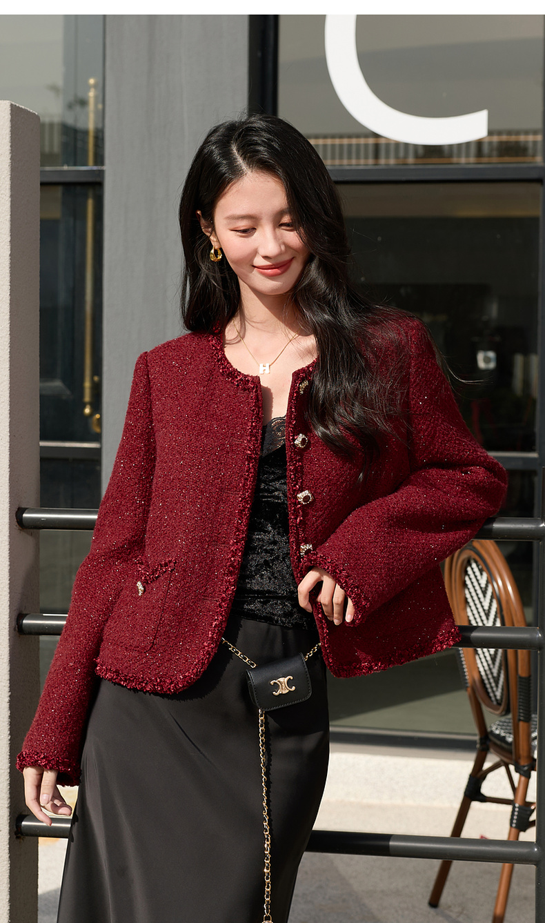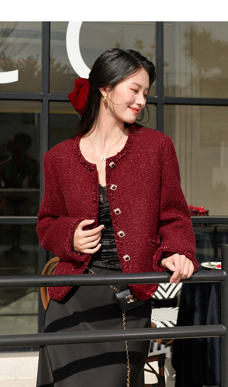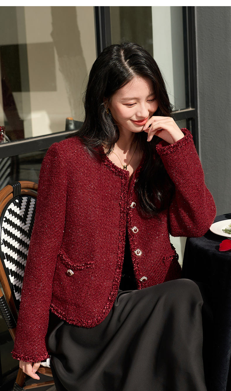 三彩2026春季新款复古轻奢香风短款外套单排扣显瘦开衫长袖S