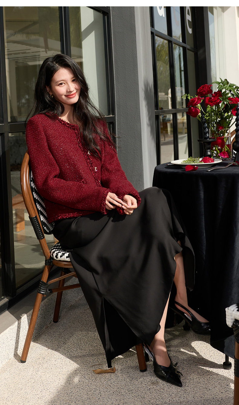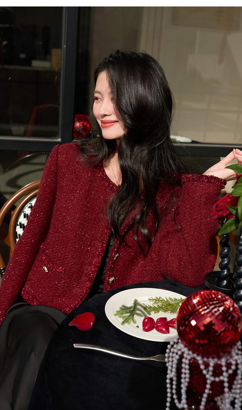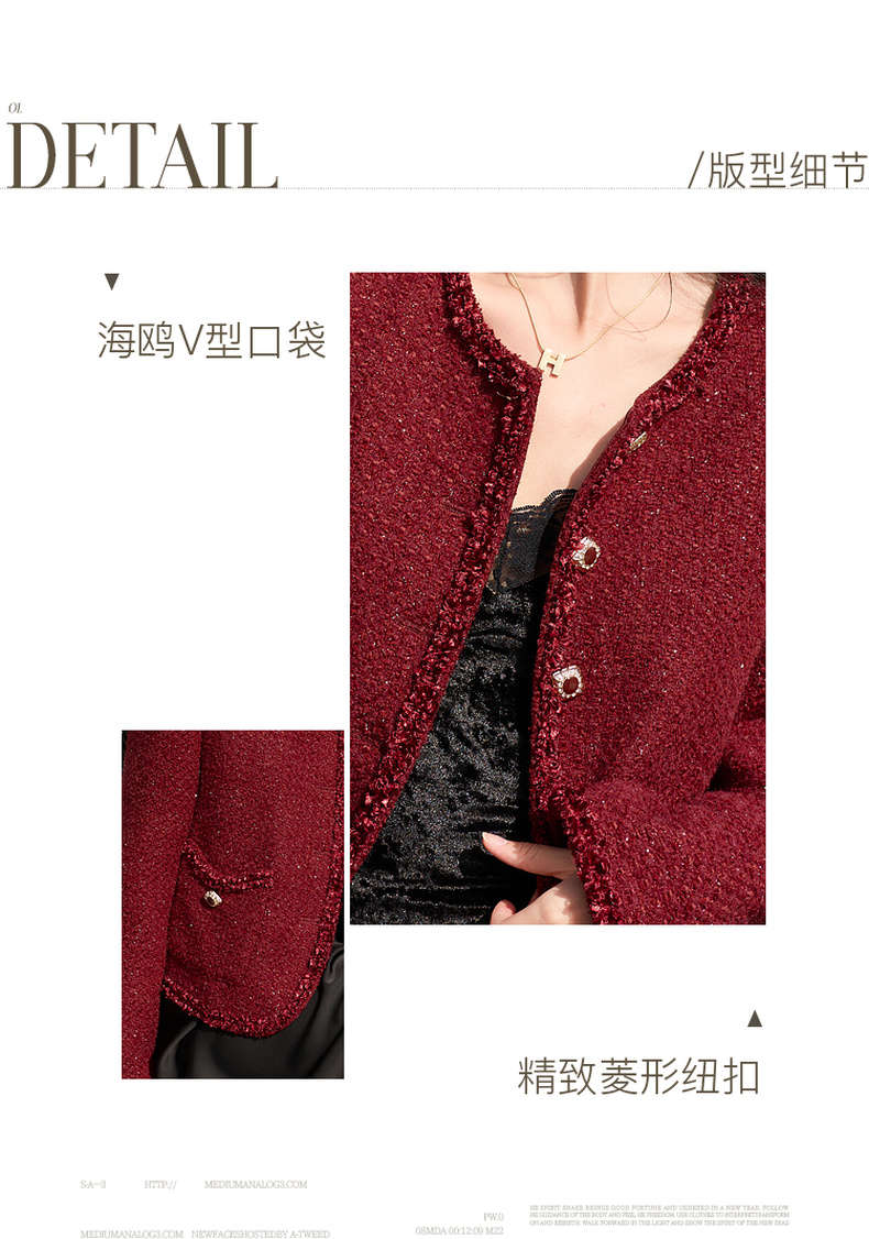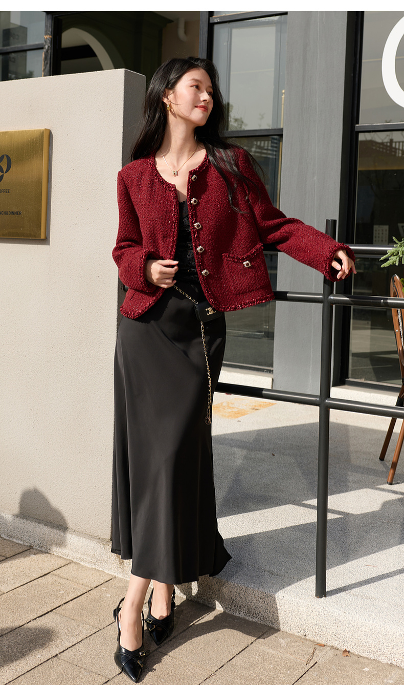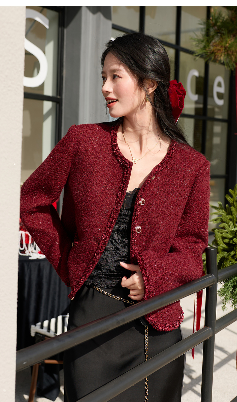 三彩2026春季新款复古轻奢香风短款外套单排扣显瘦开衫长袖S