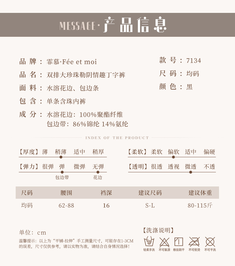 【情趣内衣】霏慕双排大珍珠勒阴情趣丁字裤7134