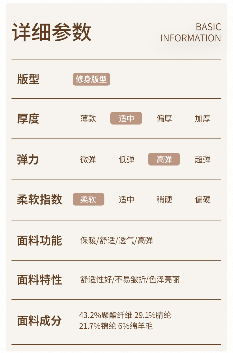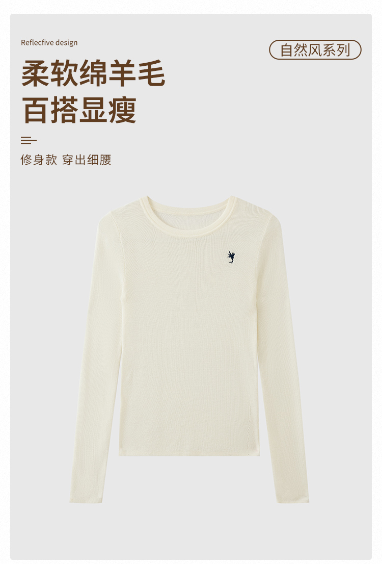 【SW速惟】袖圆领裸感修身T恤羊毛舒适上衣4562