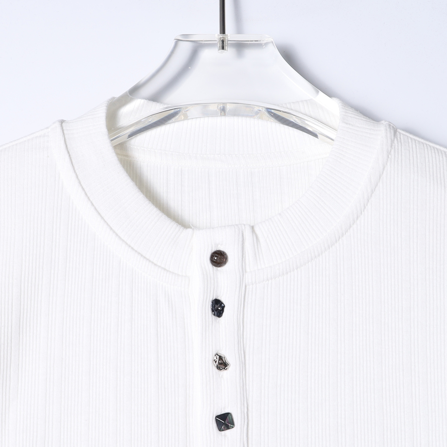 513046夏季新款时尚个性韩版纯色圆领短袖T恤彩色珠子点缀高级感上衣