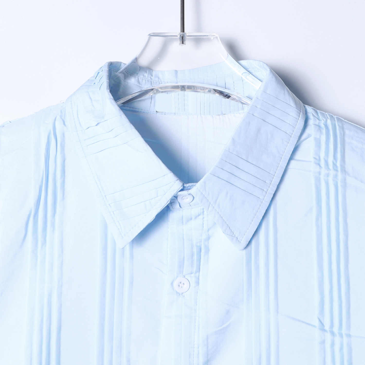 7021SDSA男士秋冬新款痞帅男装韩版潮牌纯色褶皱翻领长袖衬衣百搭休闲