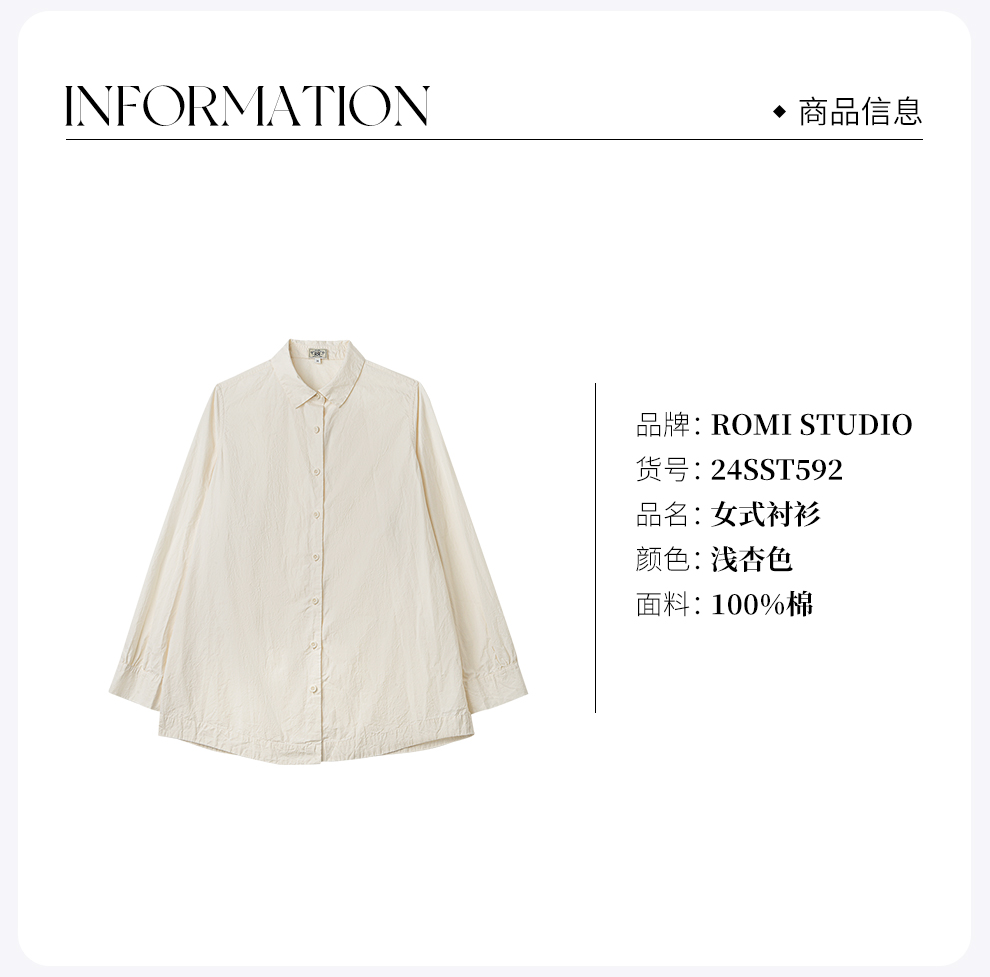 ROMI STUDIO“棉的痕迹” 100%棉近江晒布工艺纸皱肌理衬衣24SST592