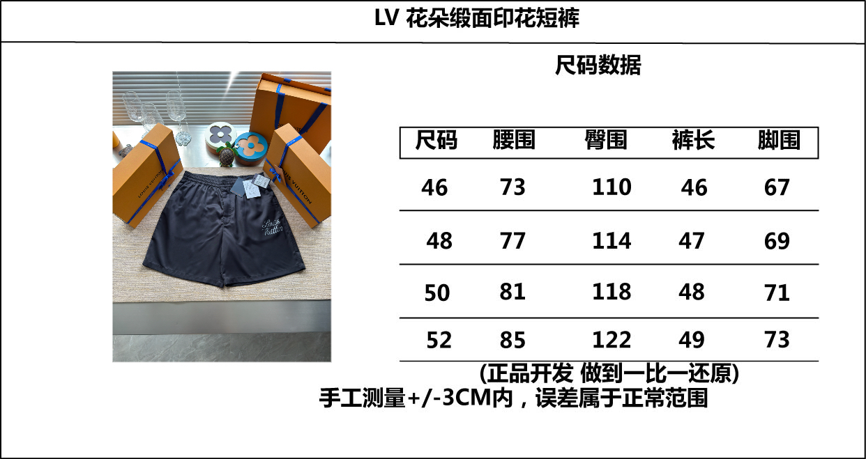Louis Vuitton25ss桑蚕丝花朵缎面印花短裤‼️整条裤子12900购买ZP拆解打造,采用定制黑色桑蚕丝面料,做到100%进口桑蚕丝纱线,意大利制造,前副饰以LV字母标识提花,松紧腰部,内里定制抽绳设计,两边侧袋设计,后副饰以LV撞色字母标识标签,真正做到1:1copy 码数:46 48 50 52